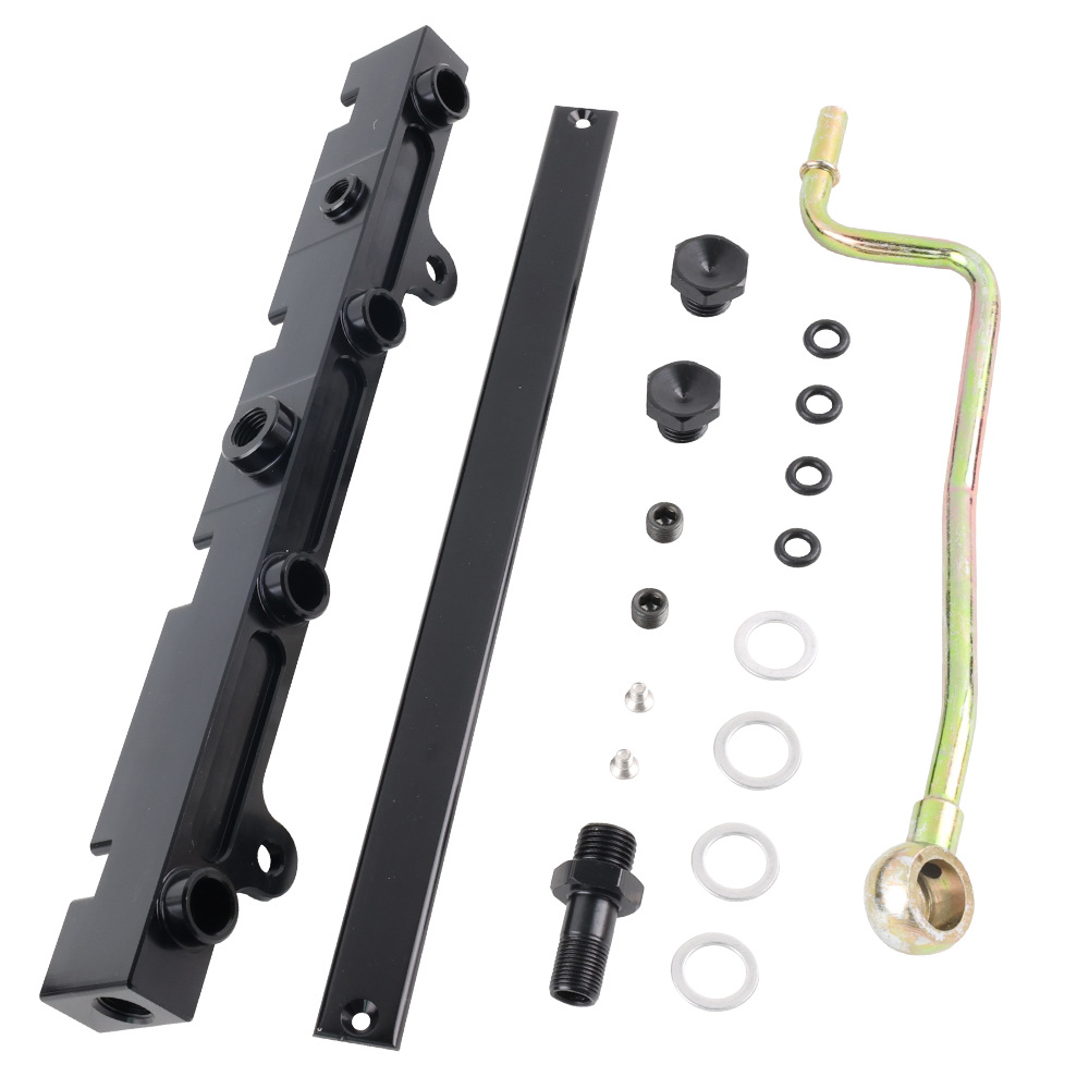 • Constructed from high-quality 6061-T6 aircraft-grade aluminum, the fuel rail and pressure regulator boast a durable hard-anodized finish for exceptional resistance to corrosion and wear, ensuring longevity and reliable fuel delivery under demanding conditions.