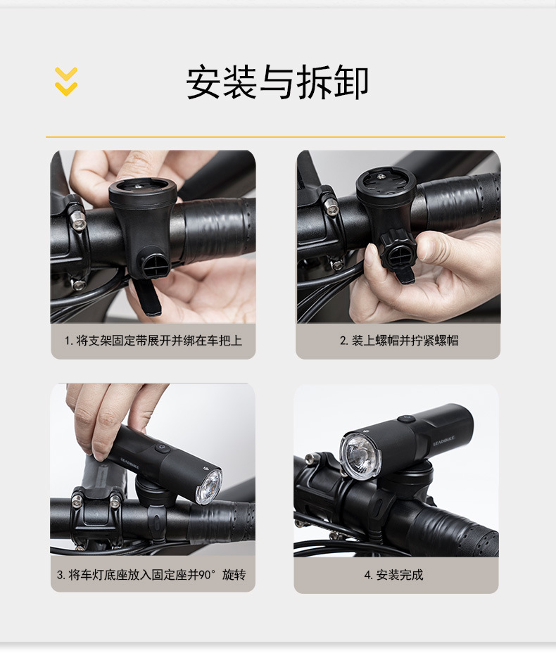 - Flexible Installation: Supports both standard and inverted mounting options, as shown, allowing for flexible positioning on your bike handlebars for optimal light beam and convenience.