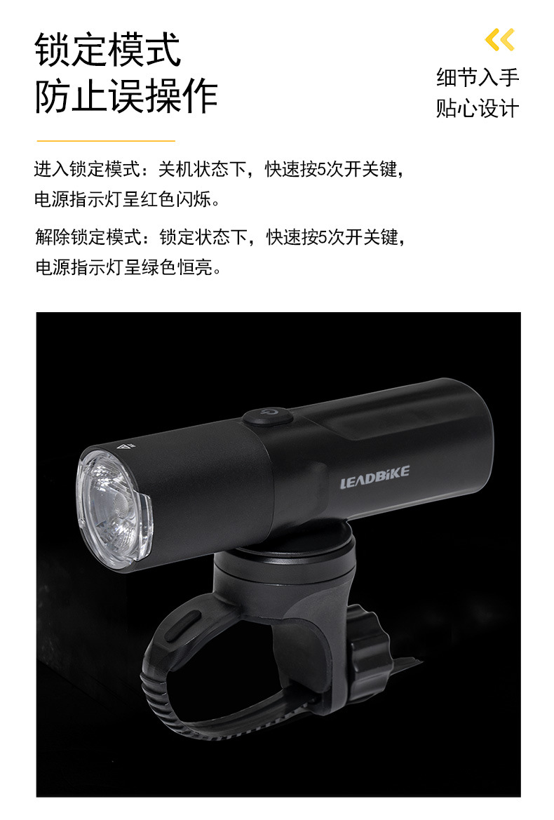 LEADBIKE Bicycle Headlight High Brightness Anti-Glare Mountain Road Bike Lights USB-C Rechargeable with Osram LED Inverted Mountable