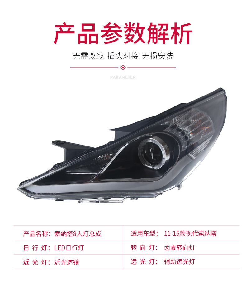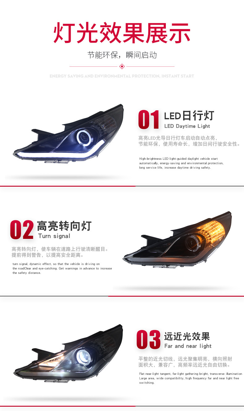 LED Angel Eye DRL Bi-xenon Projector Headlight Assembly for Sonata 8