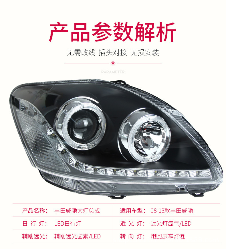 LED Angel Eye DRL Headlight Assembly for Toyota Vios (2008-2013)
