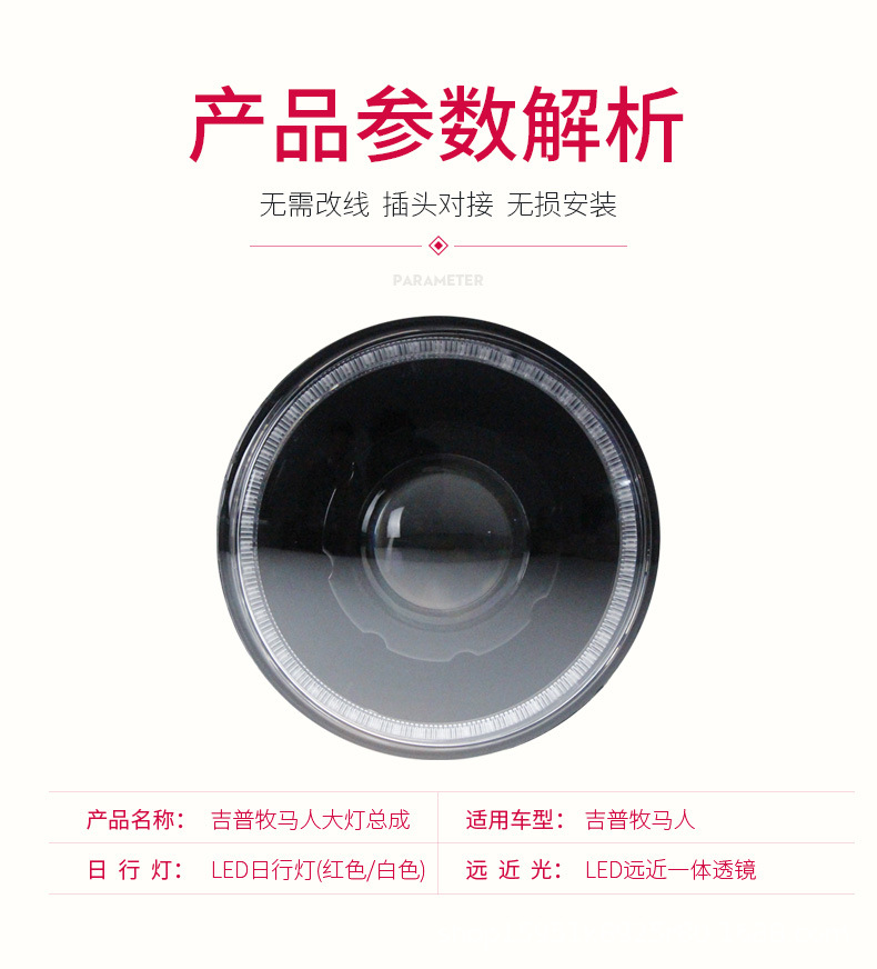 LED Angel Eye DRL Projector Xenon Headlight Assembly for Jeep Wrangler