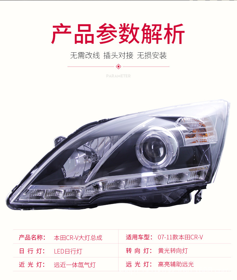 LED Angel Eye DRL Projector Xenon Headlight Assembly for Honda CRV 2007-2011