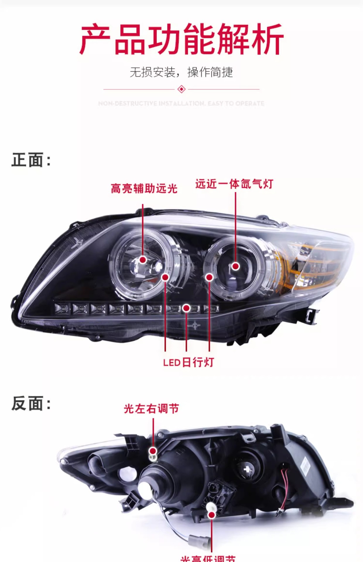 LED Angel Eye DRL Projector Xenon Headlight Assembly for Toyota 08 Old Corolla