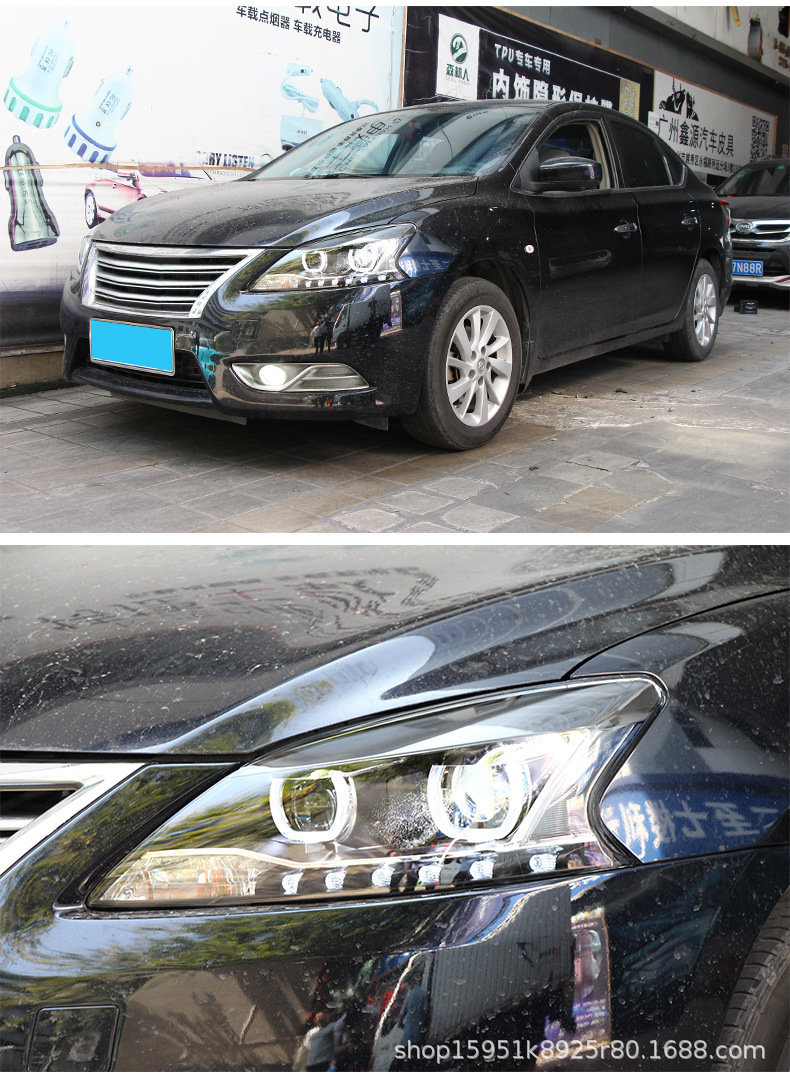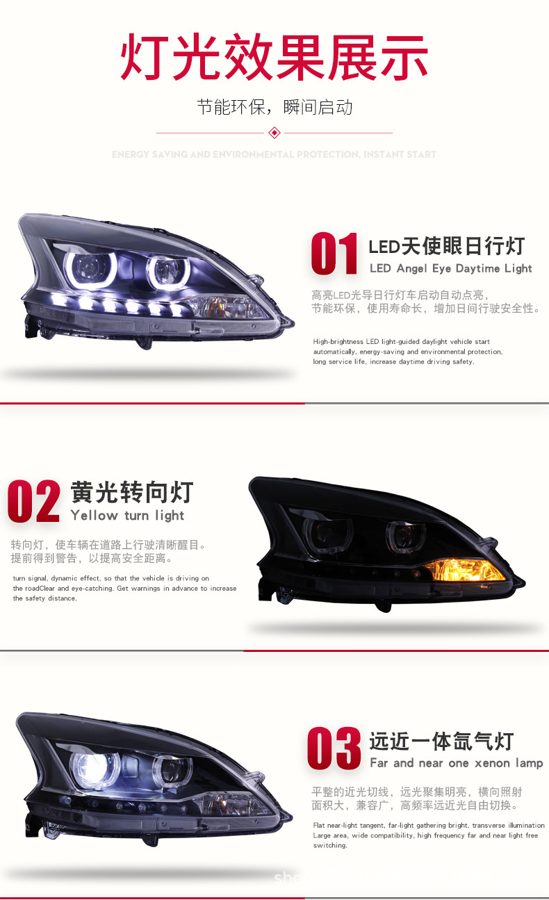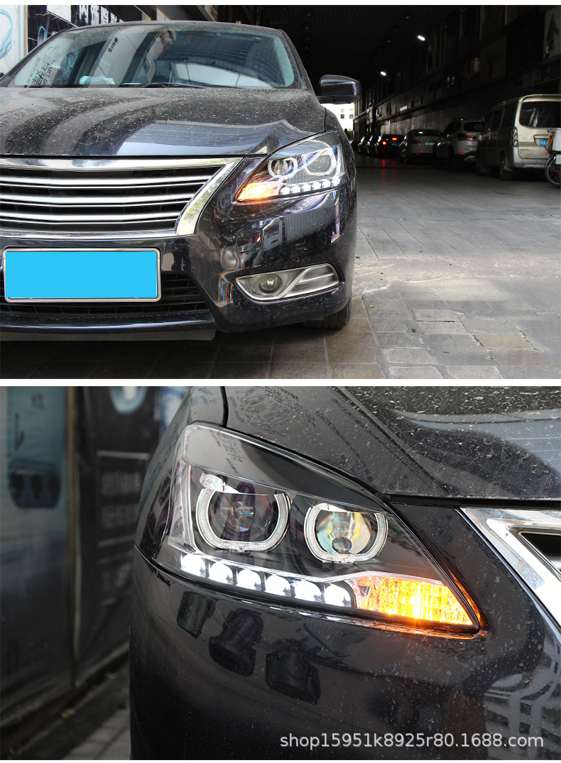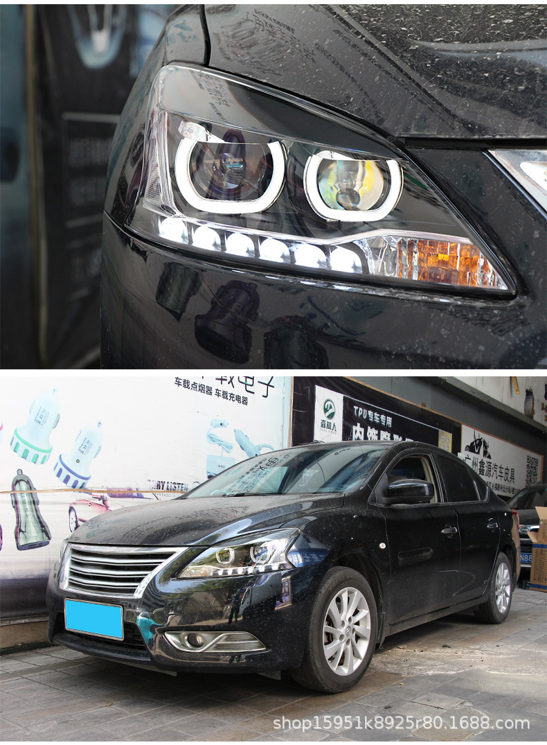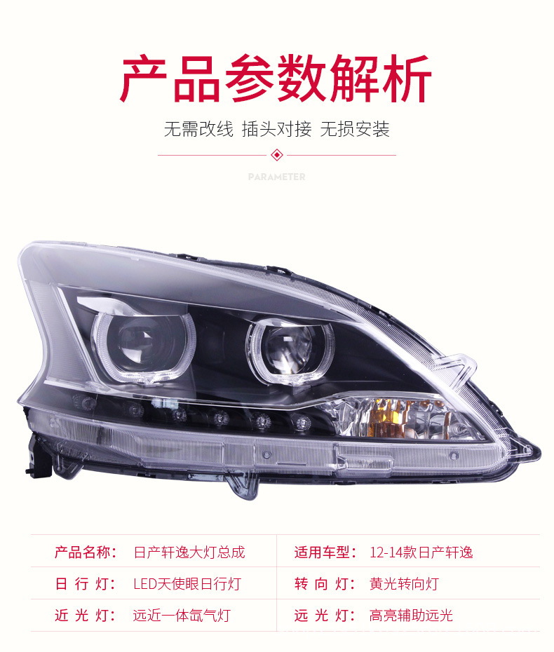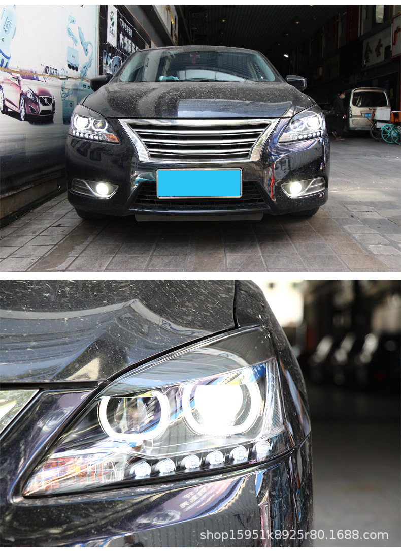 LED Angel Eye Daytime Running Light Bi-Xenon Projector Headlight Assembly for Nissan Sylphy (2012-2015)