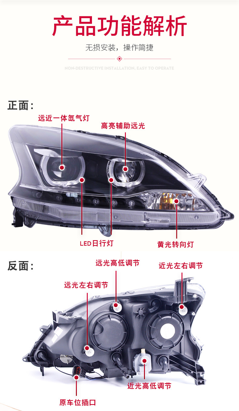- Enhanced Safety & Style: Upgrades your vehicle’s lighting system, significantly improving nighttime visibility and adding a distinctive, stylish look to your Nissan Sylphy. One pair of headlight assemblies included.