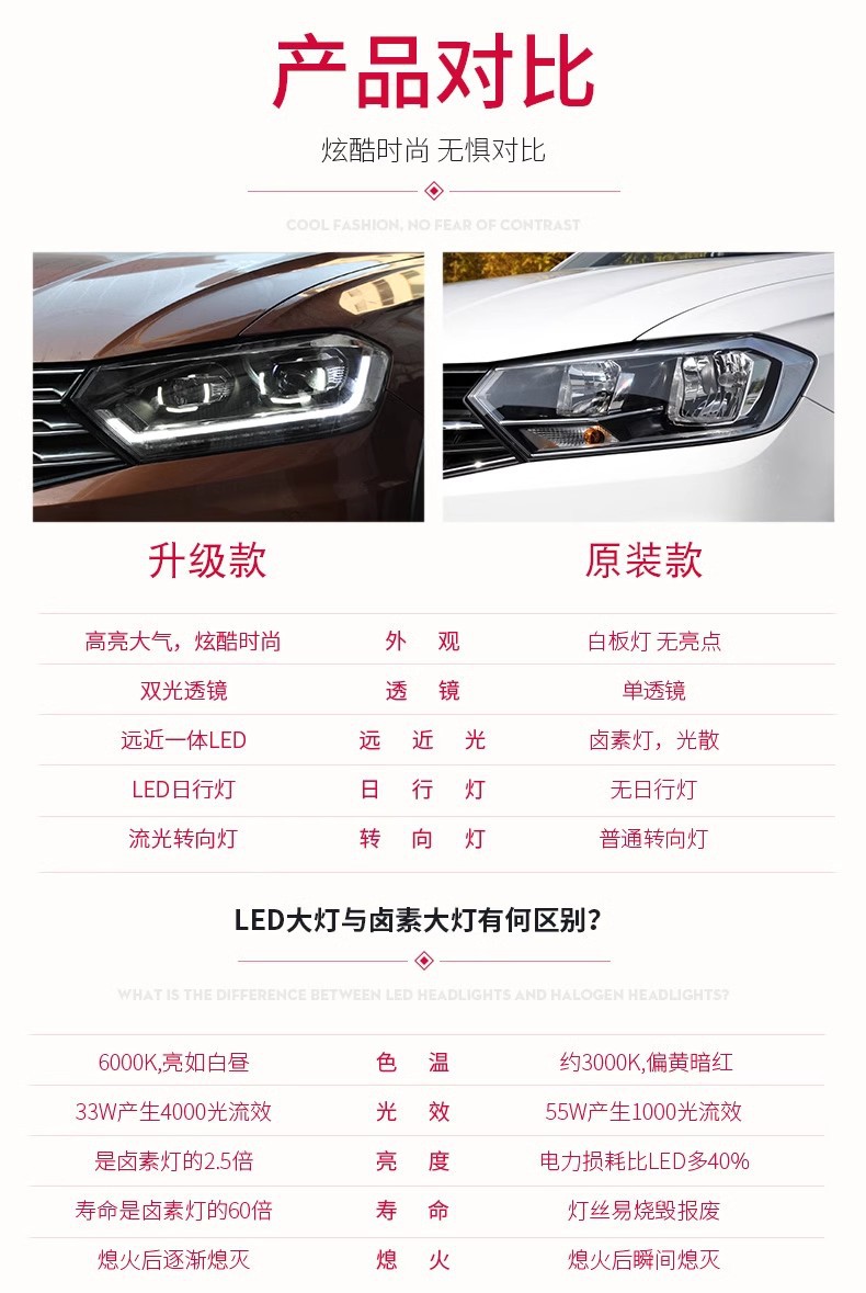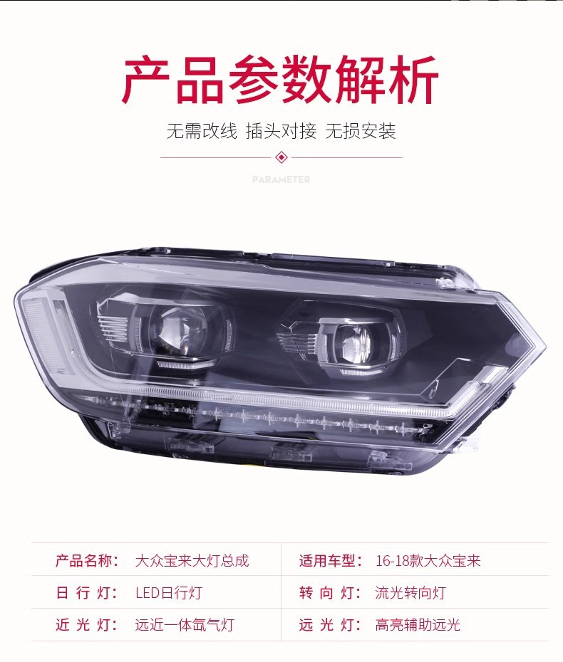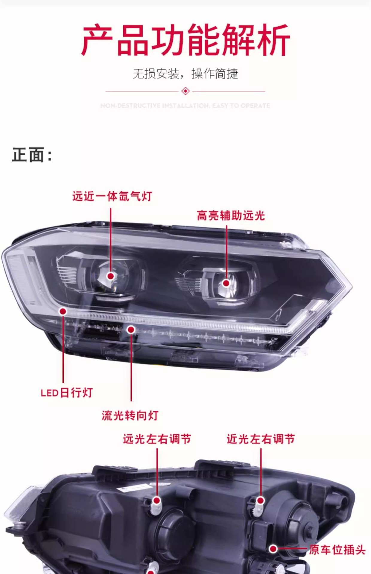 LED Angel Eye Daytime Running Light Projector Xenon Headlight Assembly for Volkswagen Bora 2016-2018