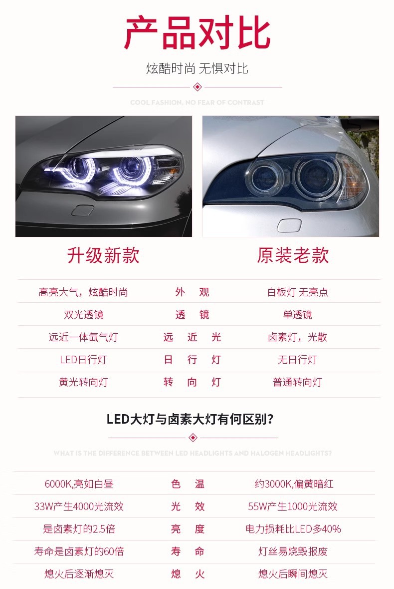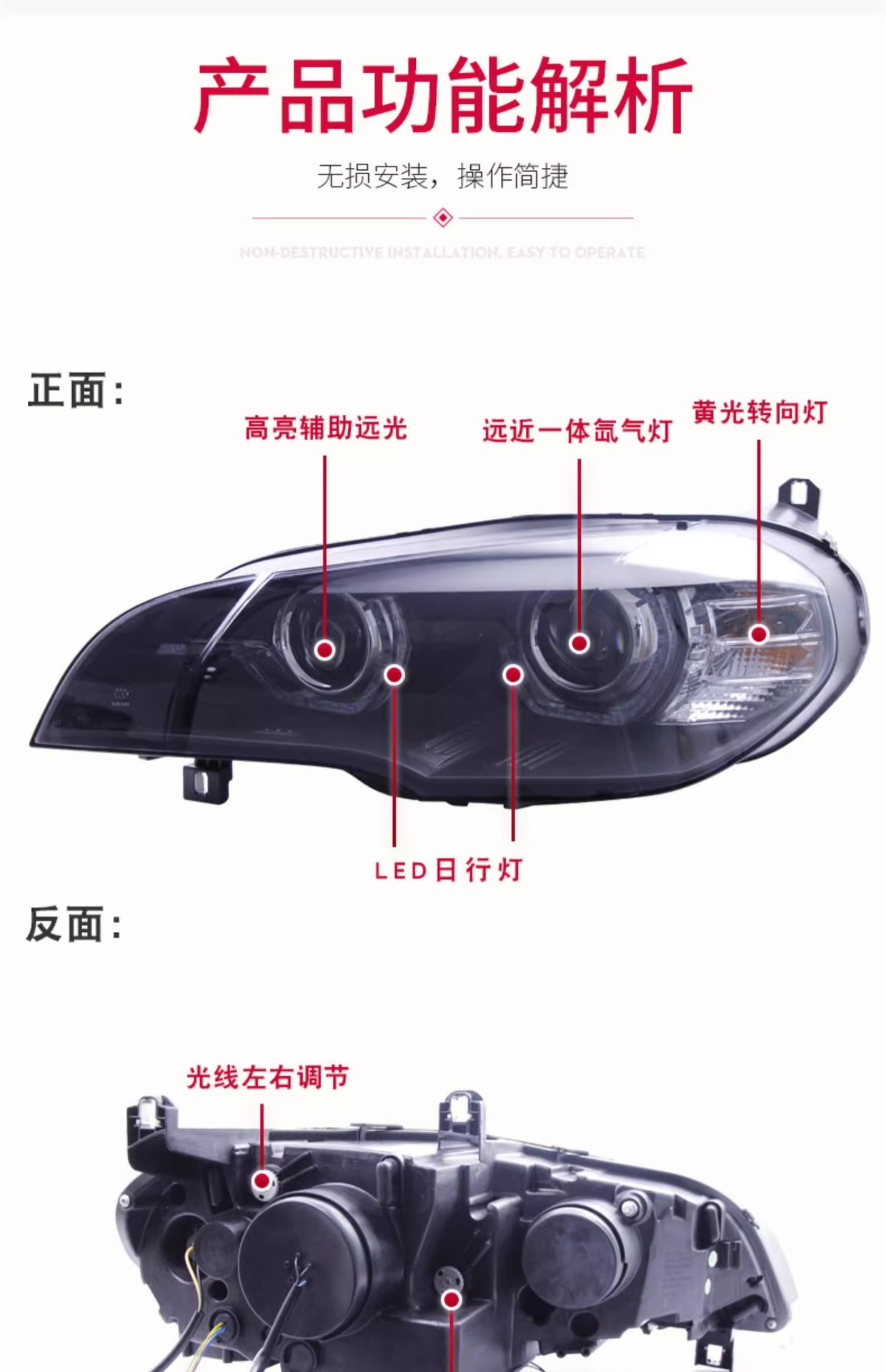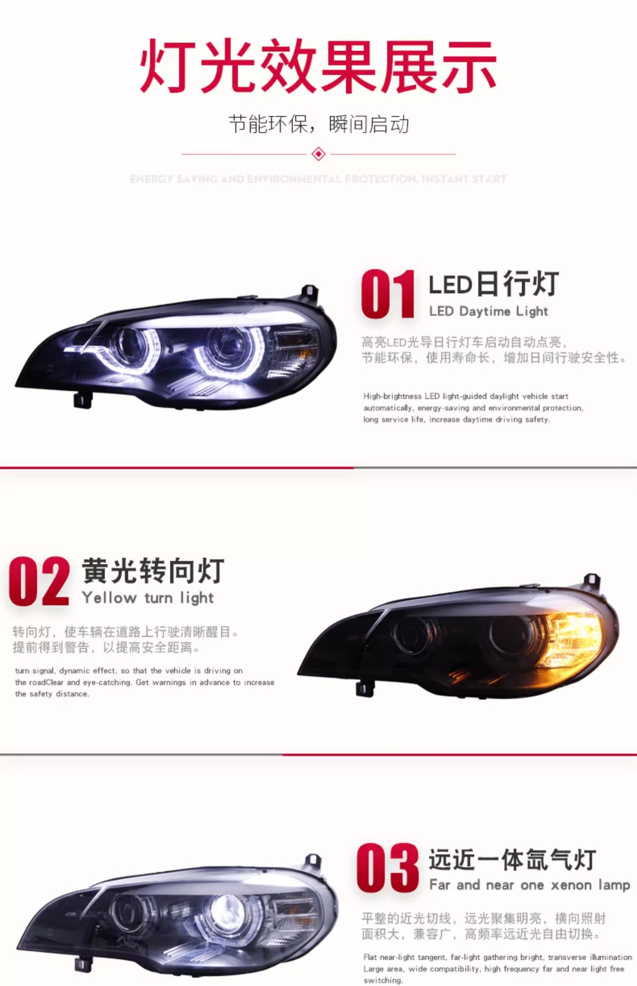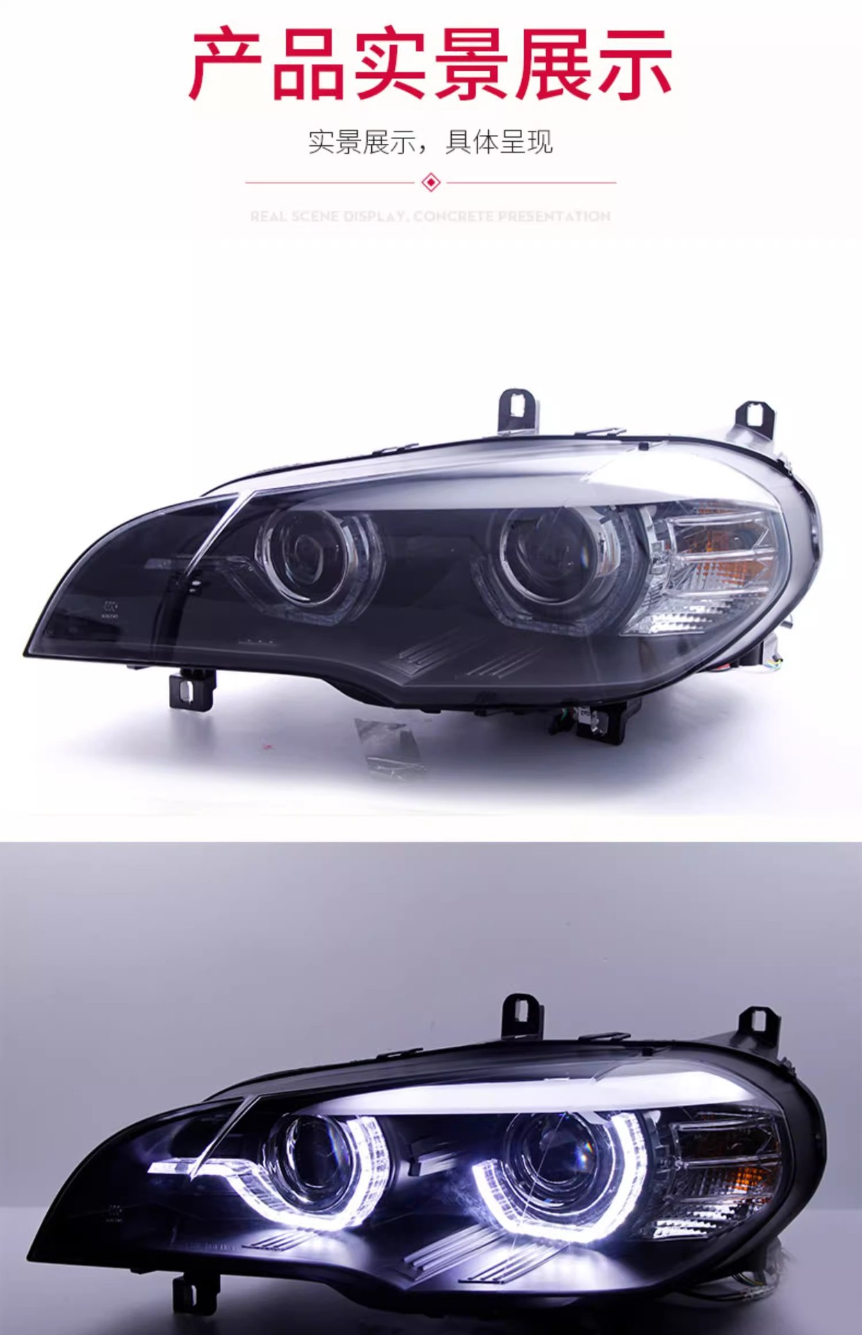 LED Angel Eye Headlight Assembly Dual Beam Projector for BMW X5 E70 (2007-2011)