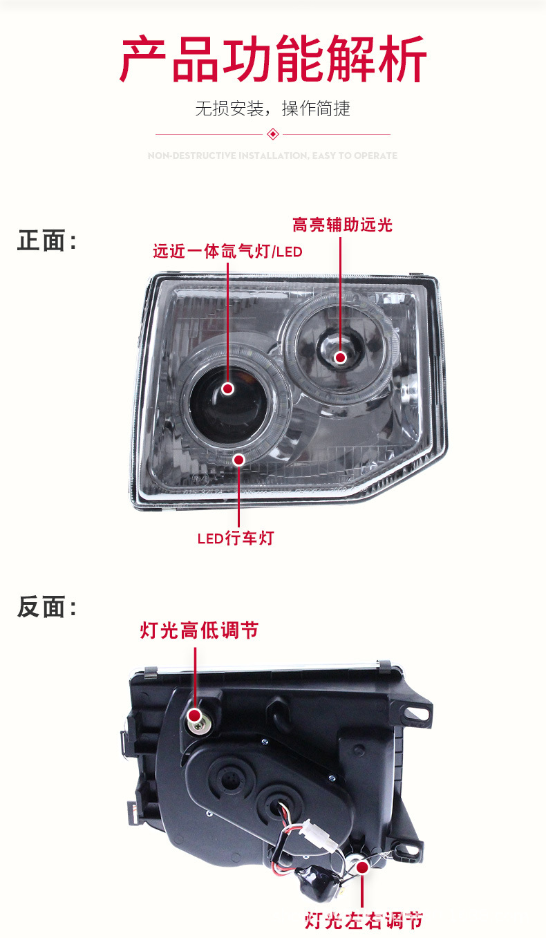 LED Angel Eye Projector Headlight Assembly for Changfeng Mitsubishi Cheetah Qibing Heijin’gang