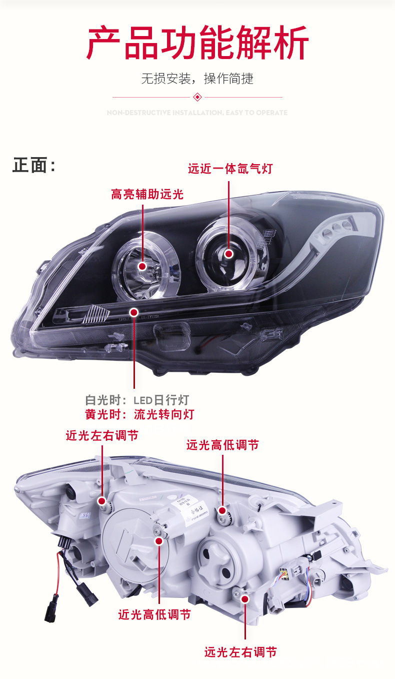- Enhanced Visibility & Durability: Features bright LED Angel Eye DRLs and advanced projector xenon light technology for superior illumination and safety on the road. Constructed with high-quality, weather-resistant materials for long-lasting performance.