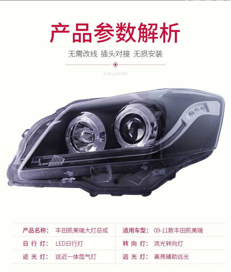 LED Angel Eye Projector Headlight Assembly for Toyota Camry 6th Gen (2009 Classic)