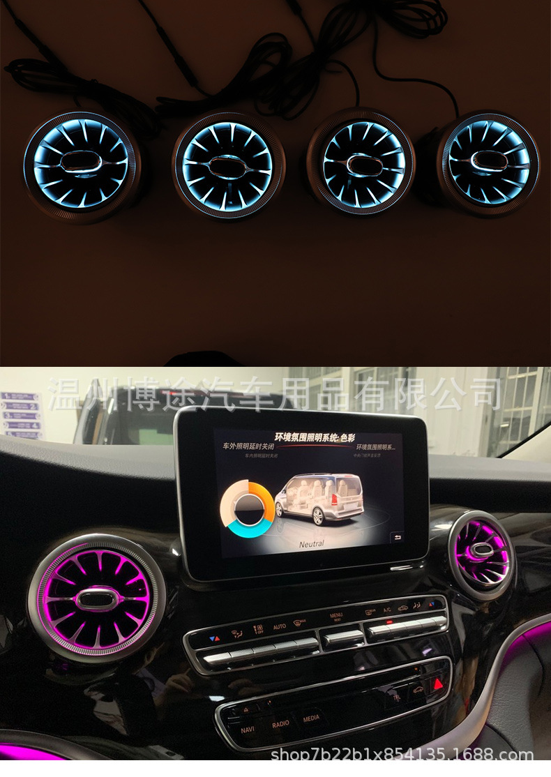 - Complete Air Outlet Assembly: Includes the full center console air outlet assembly with LED lighting and turbine vents (quantity as per order: 2 or 4 outlets + controller), offering a comprehensive upgrade for improved cabin ambiance and functionality.