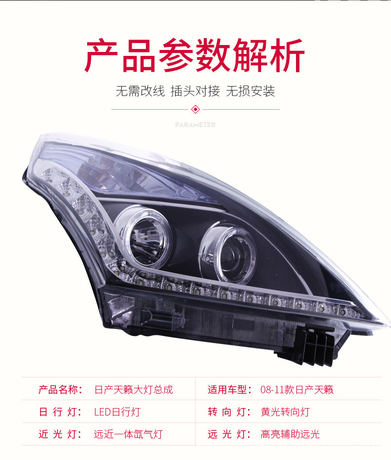 LED DRL Angel Eye Bi-xenon Projector Headlight Assembly for Nissan Teana (2008-2012)