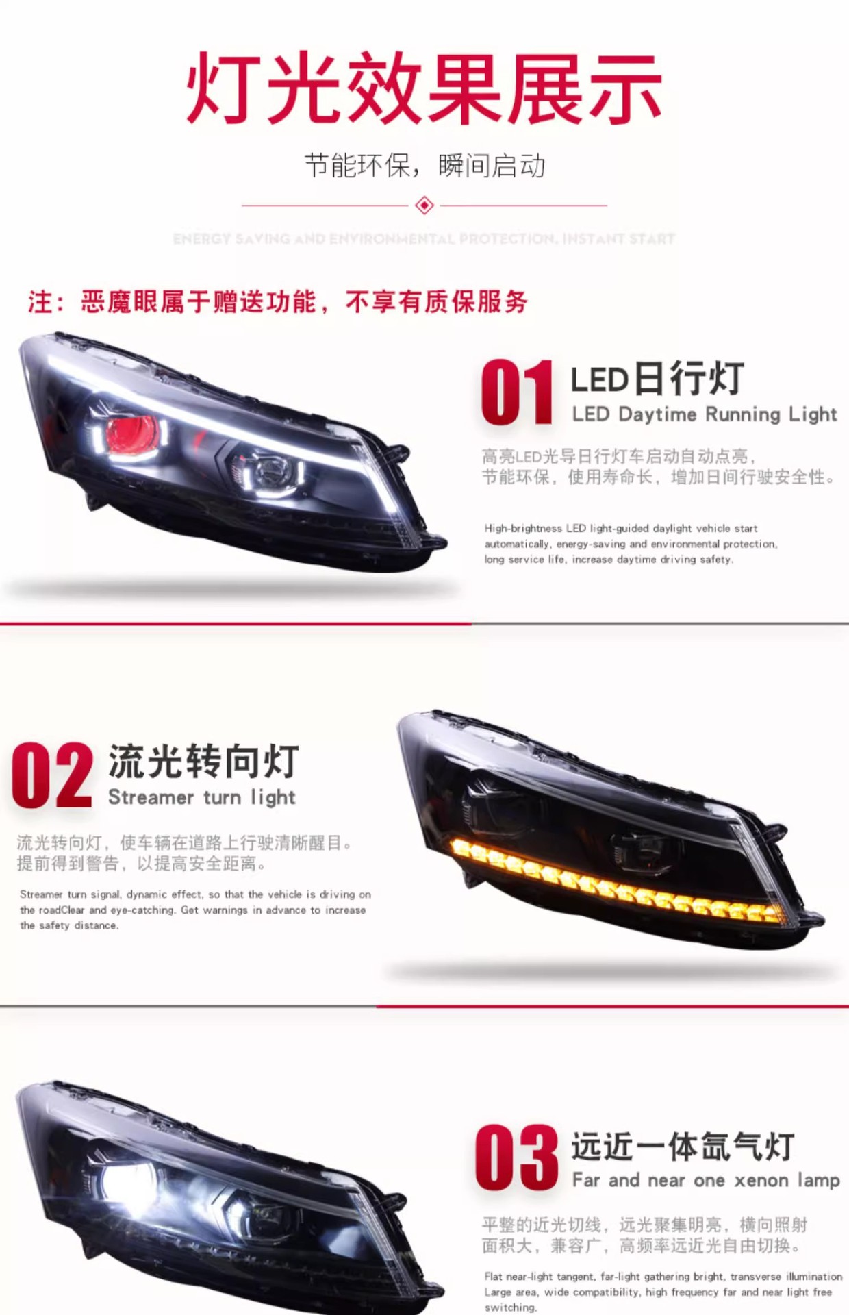 - Enhanced Lighting & Style: Features integrated LED Daytime Running Lights (DRL), angel eye rings, and projector xenon technology to dramatically improve visibility, driving safety, and give your Accord a modern, aggressive look.