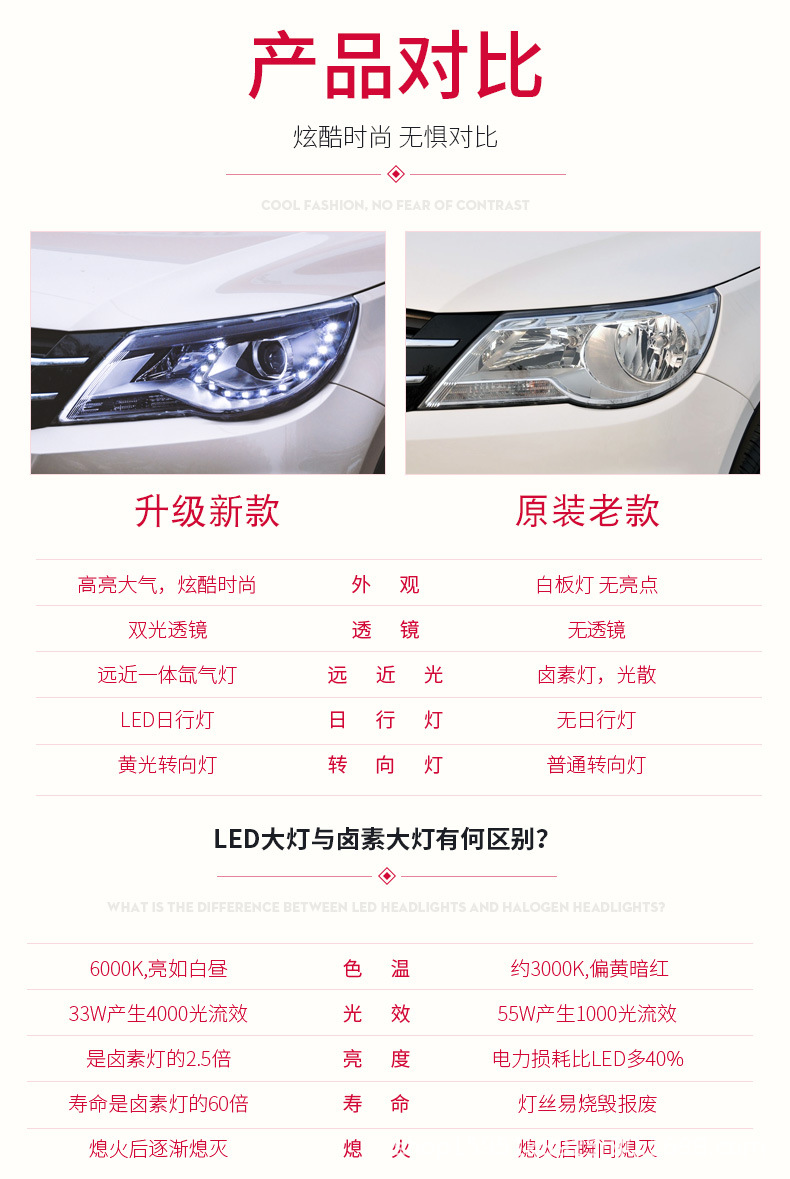 - Enhanced Aesthetics & Style: Features a sleek design with integrated LED Daytime Running Lights (DRL) and high-output bi-xenon projectors, upgrading your vehicle’s front-end appearance and visibility.