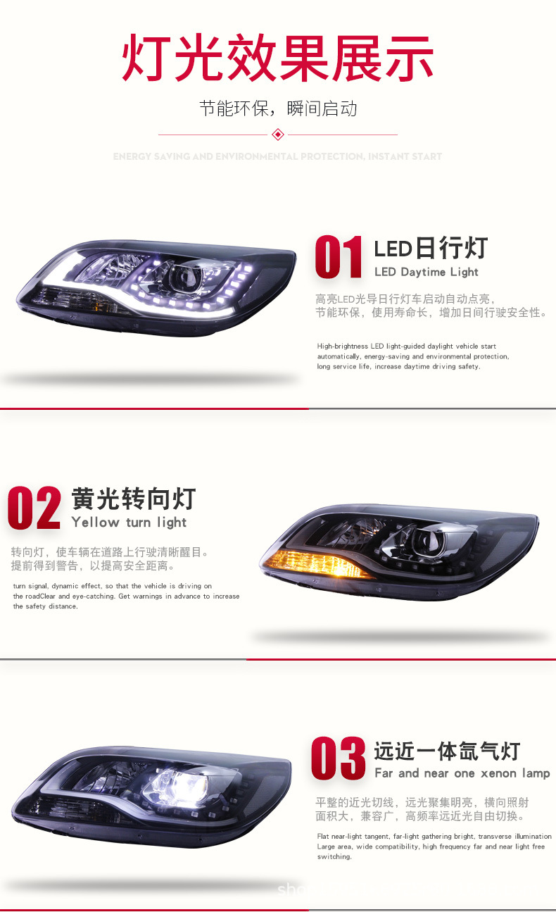 - Enhanced Visibility & Safety: Integrated with bright LED Daytime Running Lights (DRL) and Bi-Xenon projector lenses to provide superior illumination and improve driving safety in various conditions.