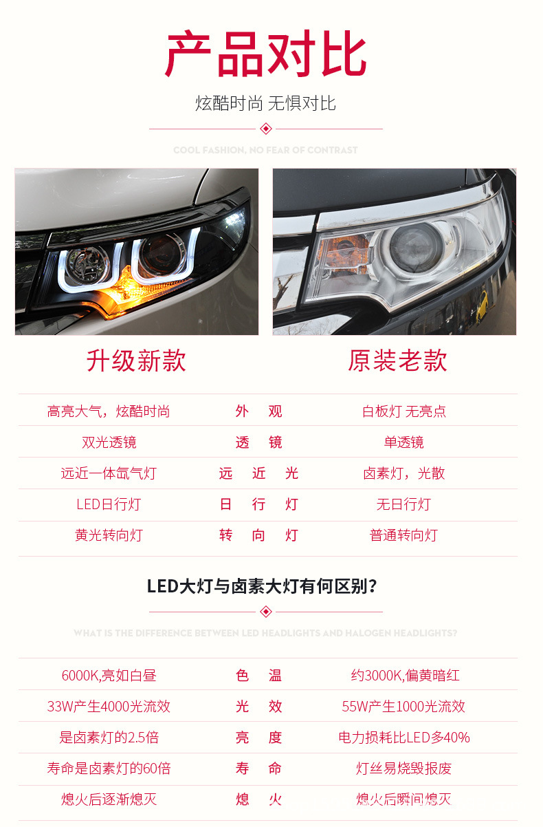 - Enhanced Aesthetics & Visibility: Features integrated LED Daytime Running Lights (DRL) and Bi-Xenon projector lenses for a modern look, superior light output, and improved night time visibility.