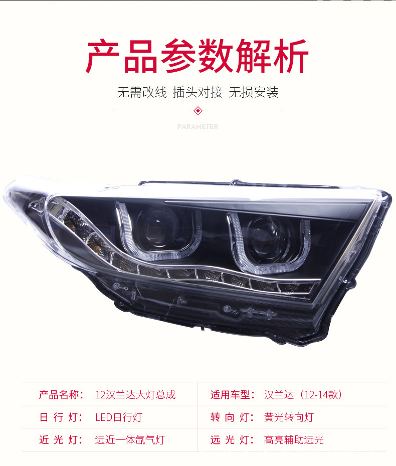 LED DRL Bi-Xenon Projector Headlight Assembly for Toyota Highlander (2012-2014)