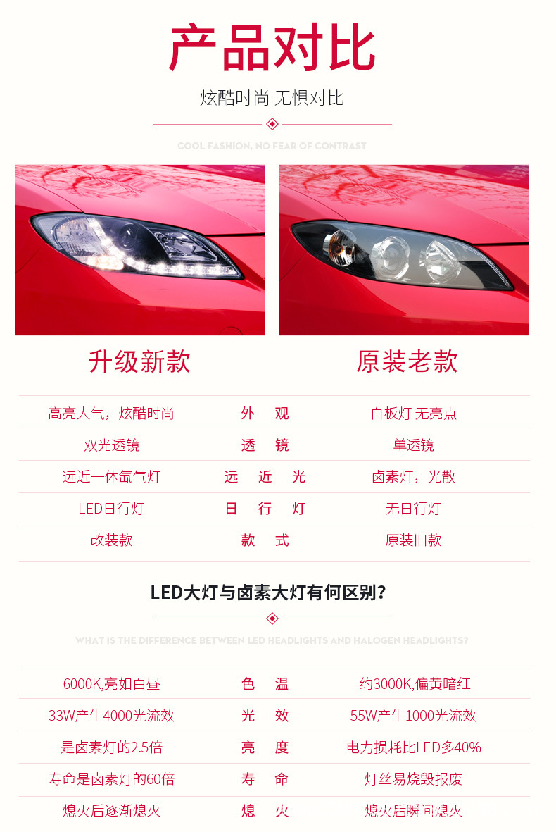 - Upgraded Aesthetics: Modernize your vehicle’s front end with a sleek, custom look. The integrated DRLs add a distinctive styling element, enhancing your Mazda 3’s visual appeal.