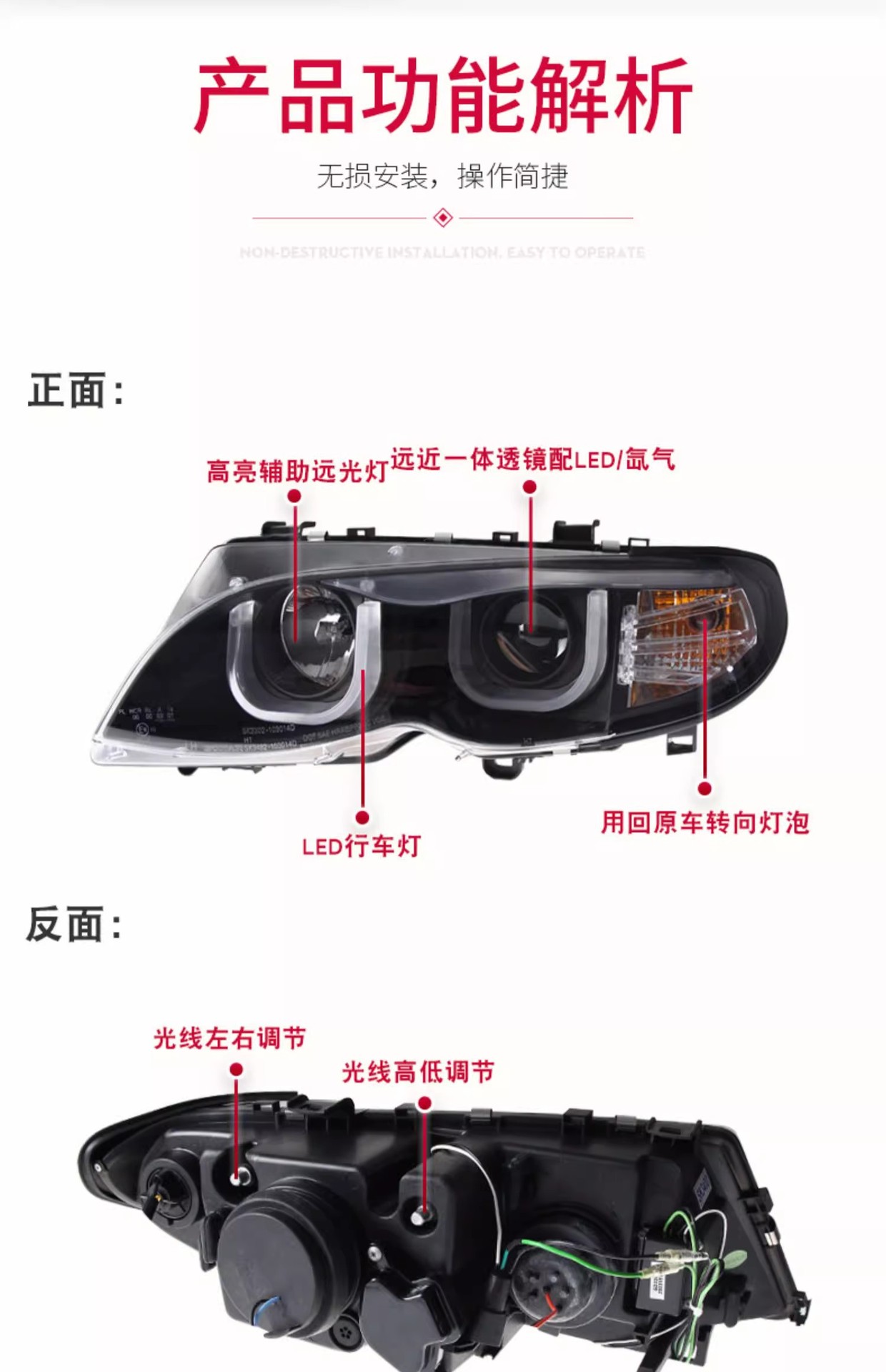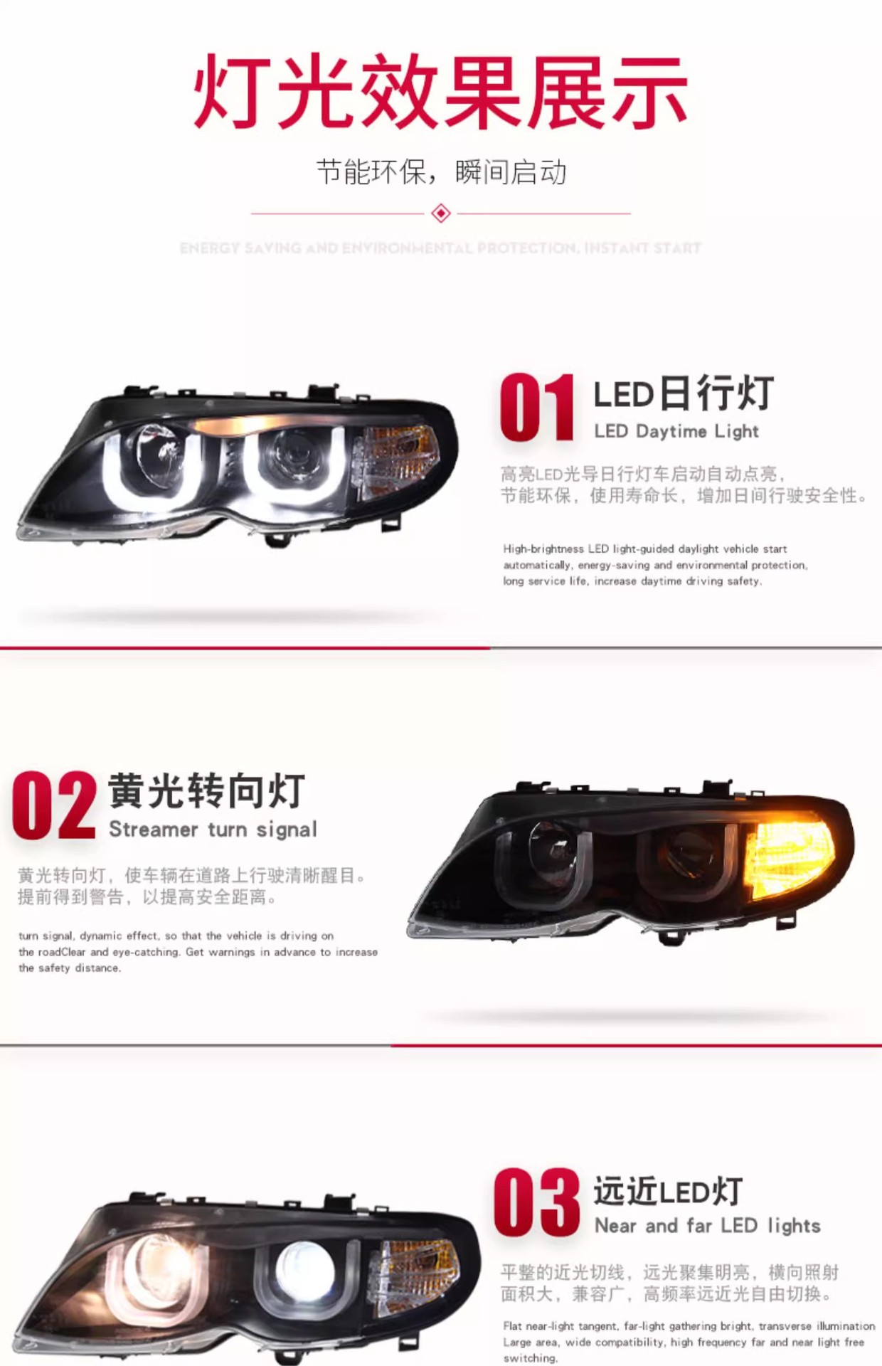 - Enhanced Visibility & Modern Style: Features bright LED Daytime Running Lights (DRL) and Bi-Xenon projector lenses, significantly improving night vision and giving your vehicle a refreshed, modern aesthetic.