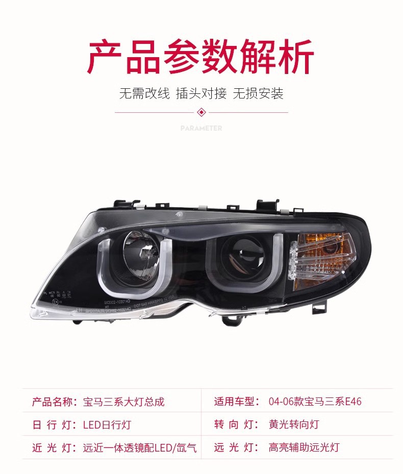 LED DRL Bi-Xenon Projector Headlight Assembly for BMW 3 Series E46 (2001-2004)