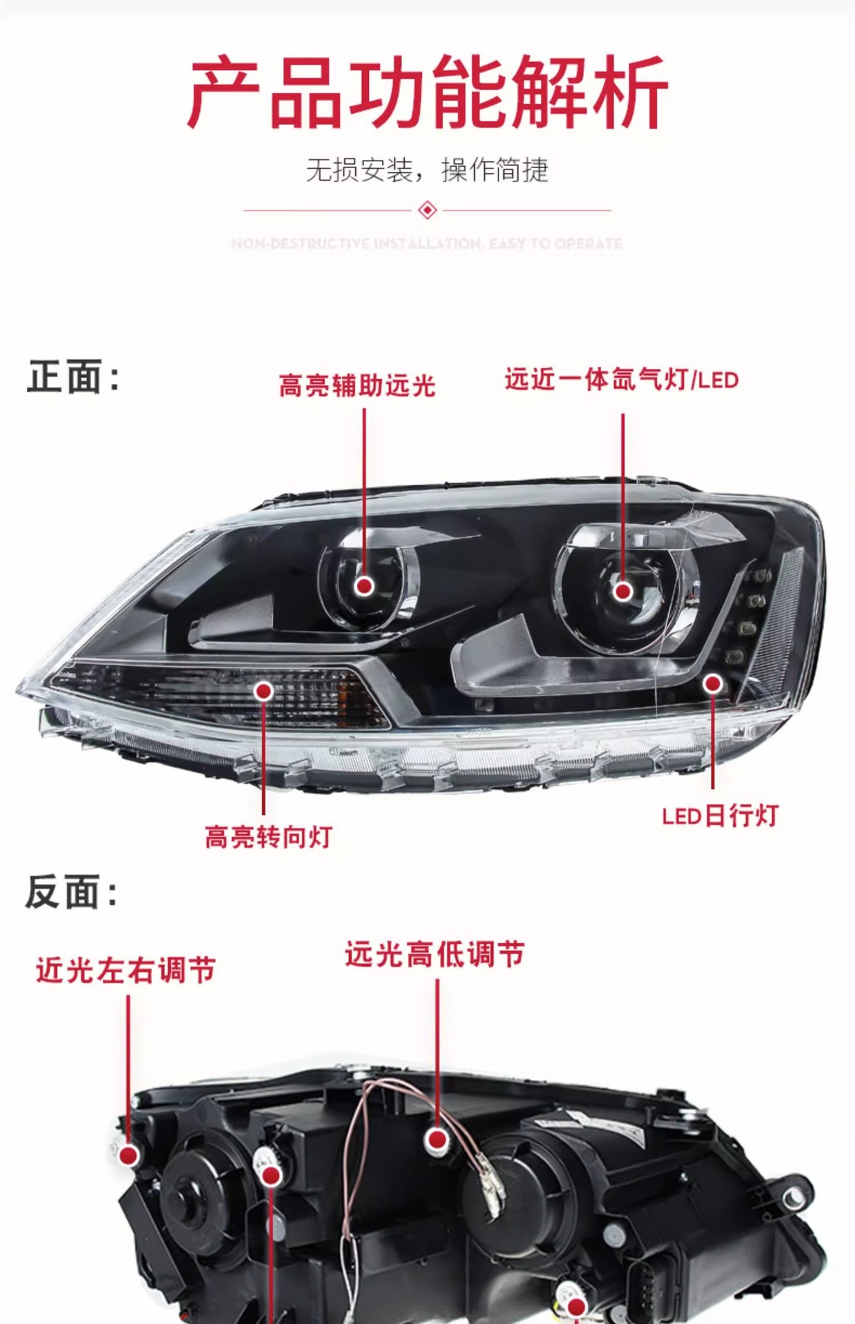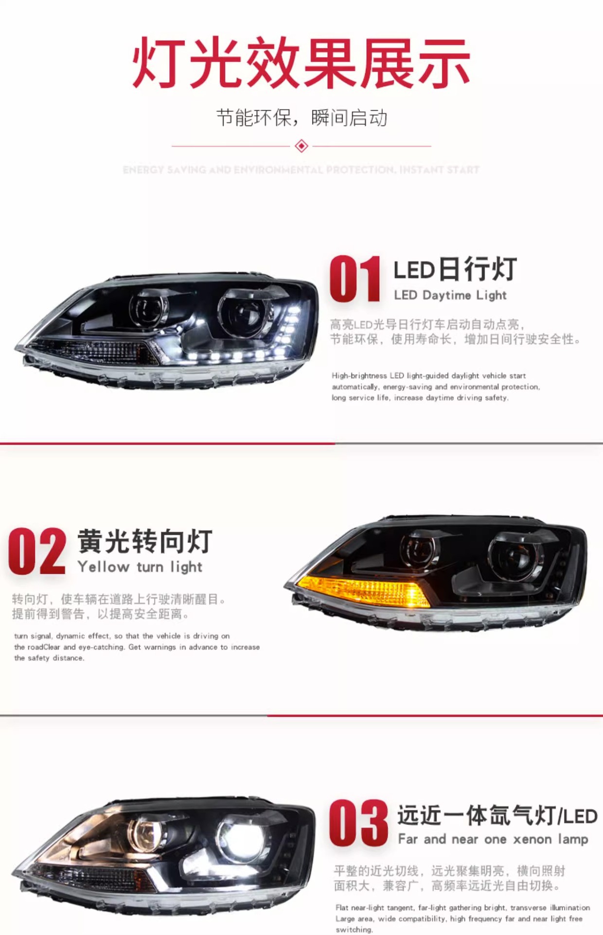- Enhanced Visibility: Features European-style LED Daytime Running Lights (DRL) and a dual-projector Bi-Xenon setup, as shown, to provide brighter, clearer illumination and improved safety.
