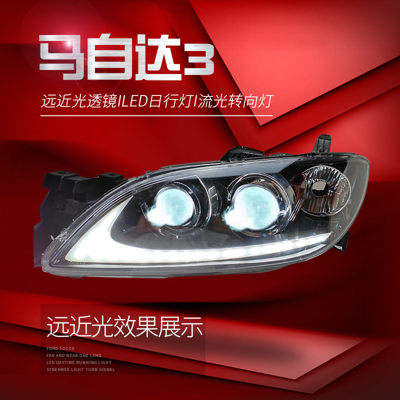 LED DRL Bi-Xenon Projector Headlight Assembly for Mazda 3 2006-2012 with Demon Eye and Turn Signal