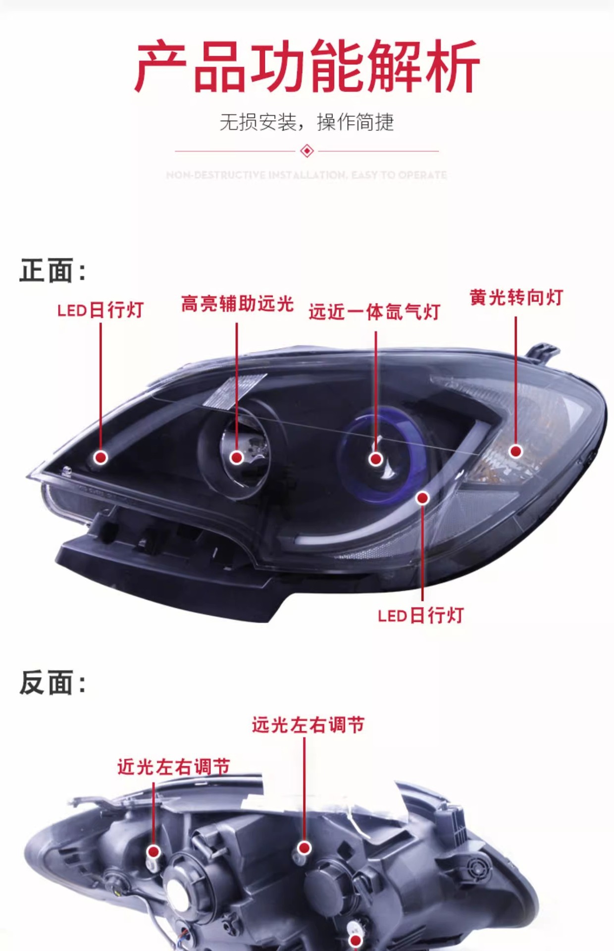 - Premium Illumination: Features integrated LED daytime running lights (DRL) and bi-xenon projector technology for superior brightness and beam pattern.
