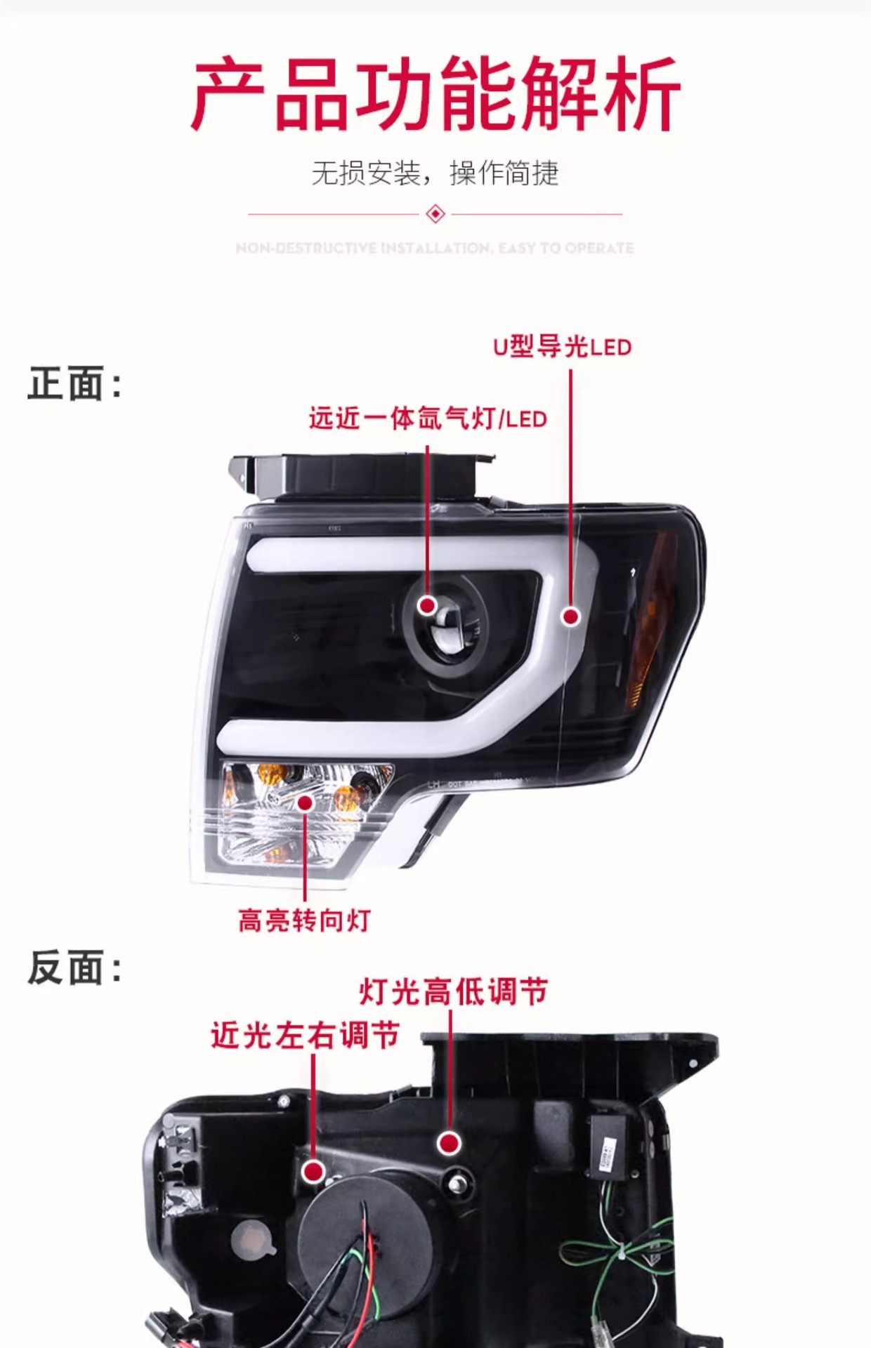 - Direct Fitment: A perfect replacement headlight assembly. Compatible with Ford F-150 Raptor 2008-2014 models.