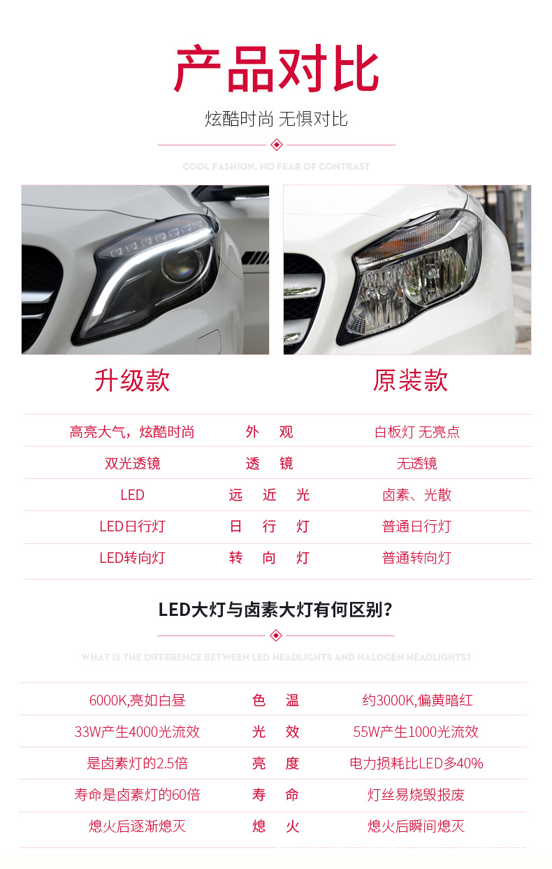 LED DRL Bi-xenon Headlight Assembly for Mercedes-Benz GLA