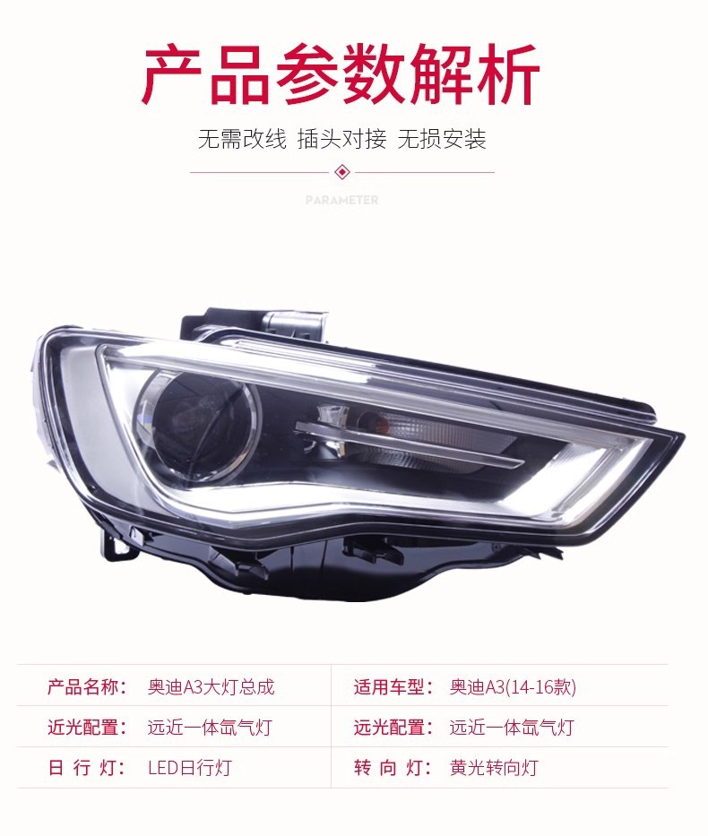 LED DRL Bi-xenon Headlight Assembly for Audi A3 (2013-2016)
