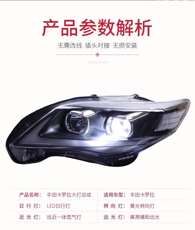 LED DRL Bi-xenon Projector Headlight Assembly for Toyota New Corolla (2011-2013)