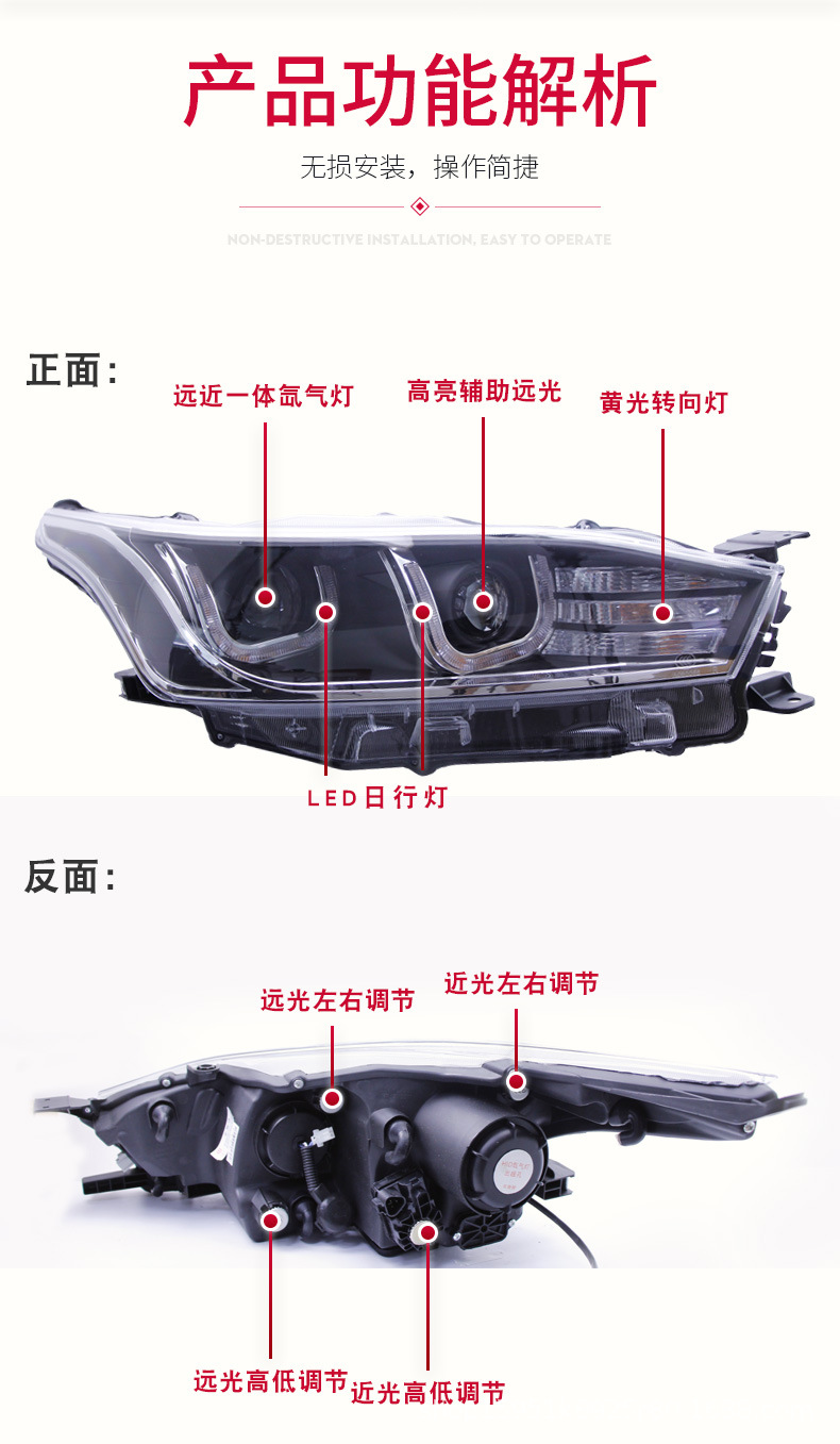 - Enhanced Aesthetics: Upgrade your vehicle’s front-end appearance with a modern and aggressive headlight design, adding a sleek and stylish look to your Toyota Yaris L.
