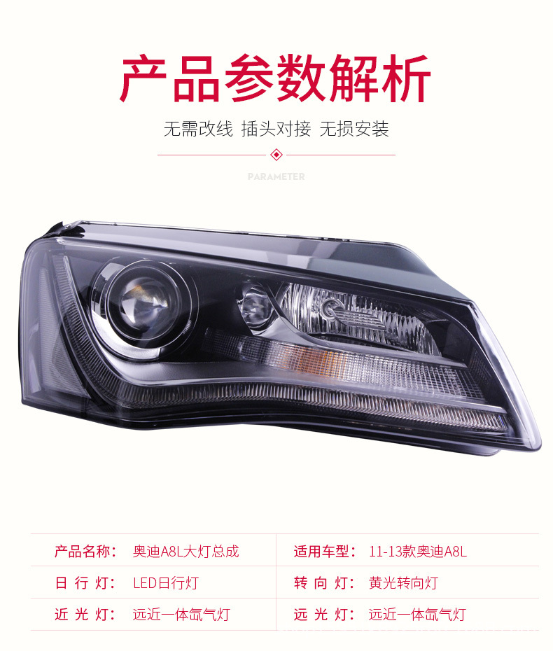 LED DRL Bi-xenon Projector Headlight Assembly for Audi A8L (2011-2013)