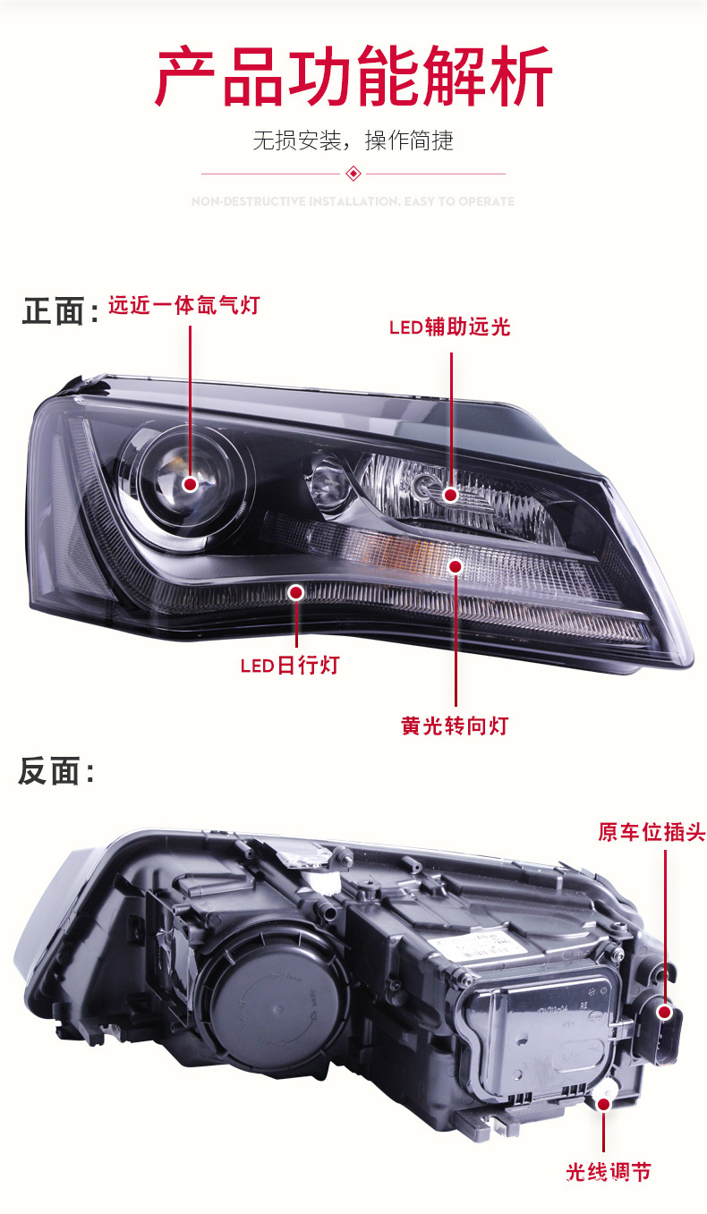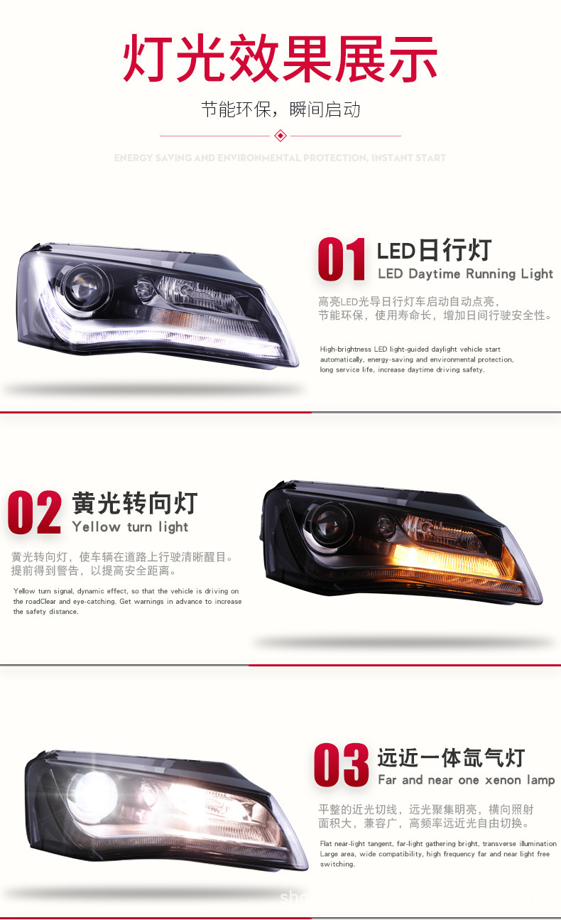 - Premium Illumination: Features integrated LED daytime running lights (DRL) and high-performance bi-xenon projector lenses, providing superior brightness and visibility for enhanced driving safety.
