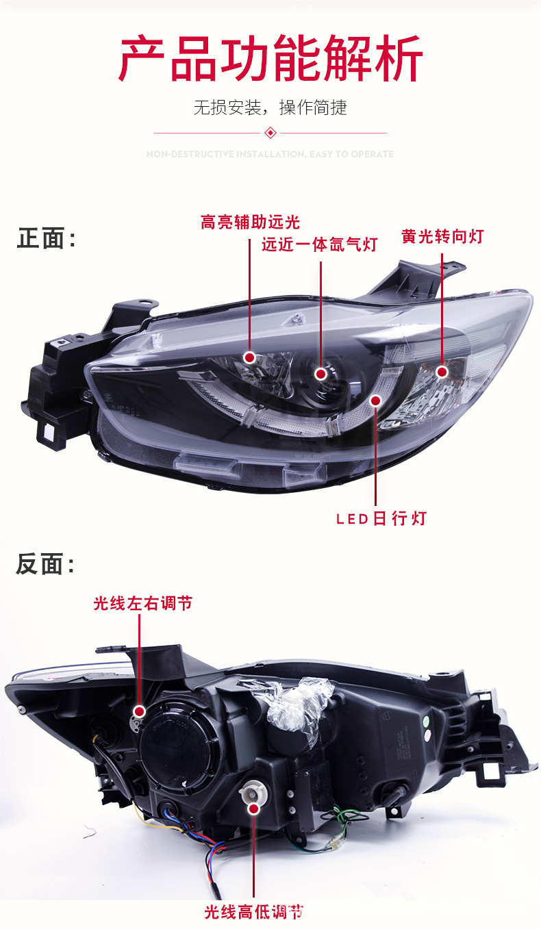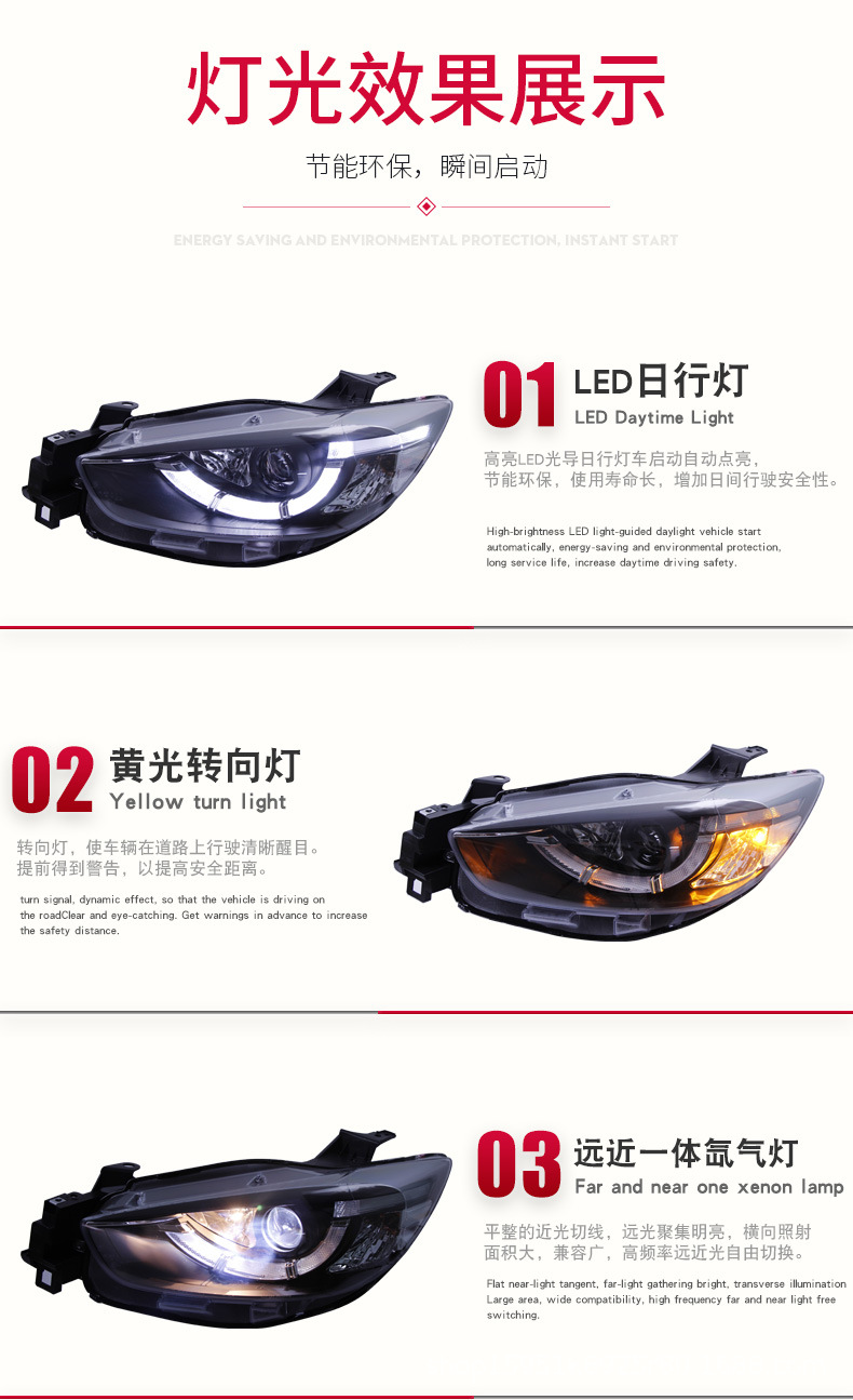 - Stylish Spoon Design: Unique spoon-style LED daytime running light design adds a distinctive and luxurious look to your Mazda CX-5, making it stand out on the road.