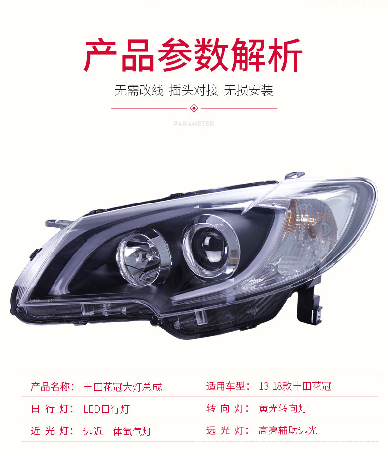 - Precise Fitment: Specifically designed for Toyota Corolla 2013-2018 models, ensuring a perfect, direct-fit replacement for your original headlight assembly.