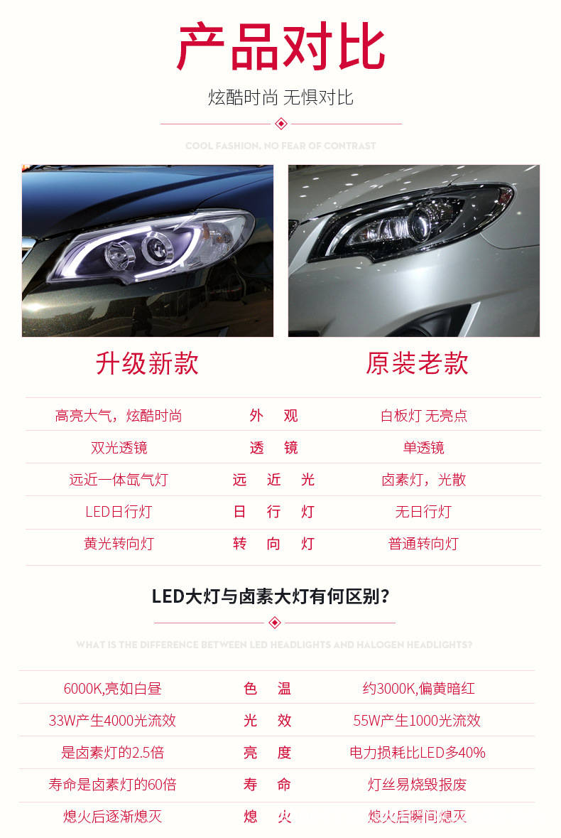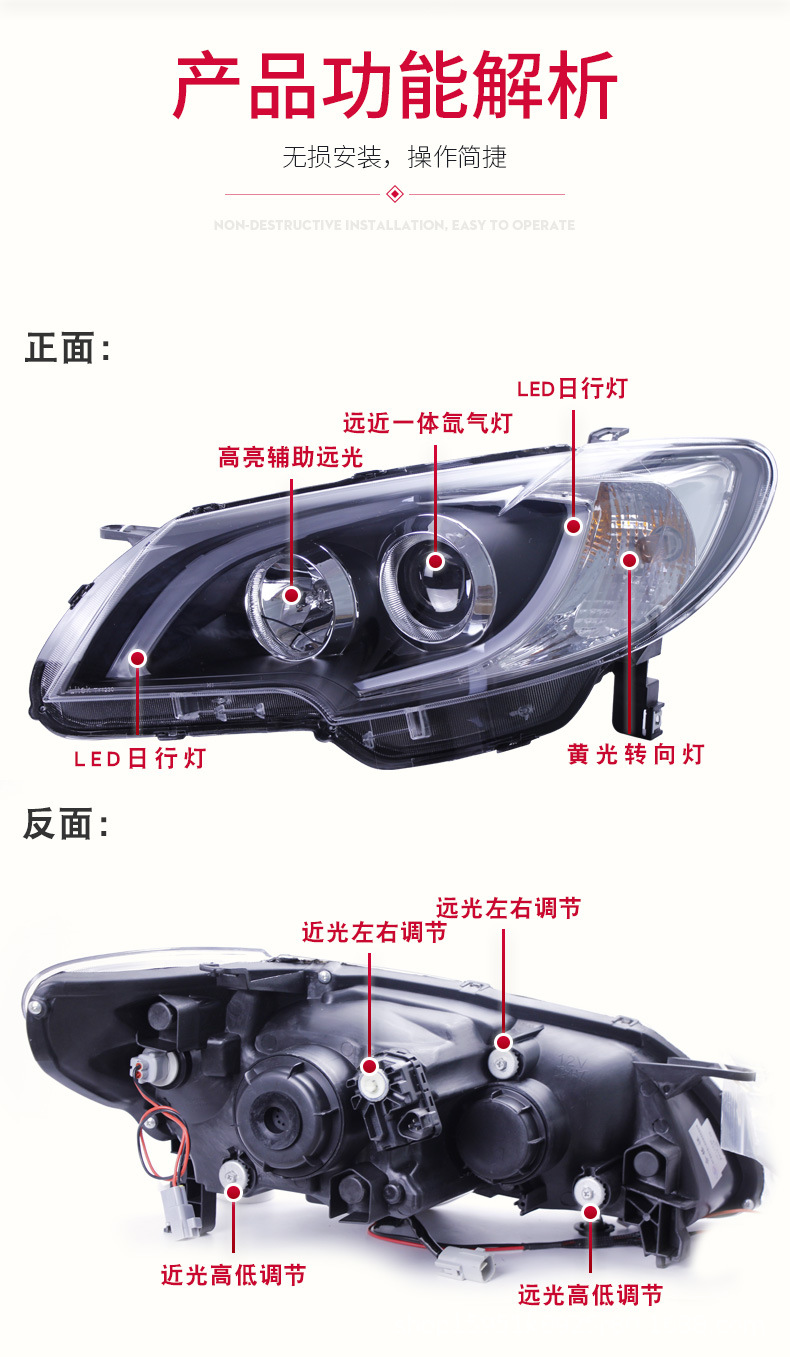 - Enhanced Visibility & Safety: Features integrated LED daytime running lights (DRL) and high-performance bi-xenon projector lenses for superior illumination and improved road presence.