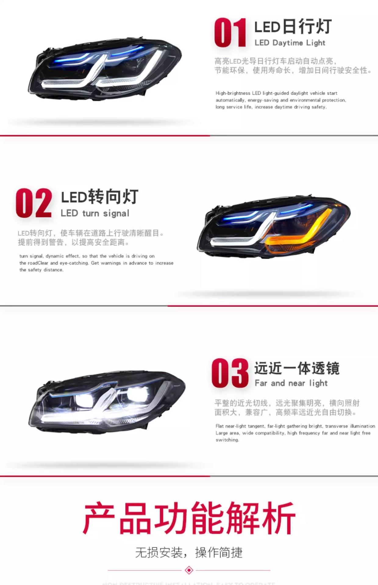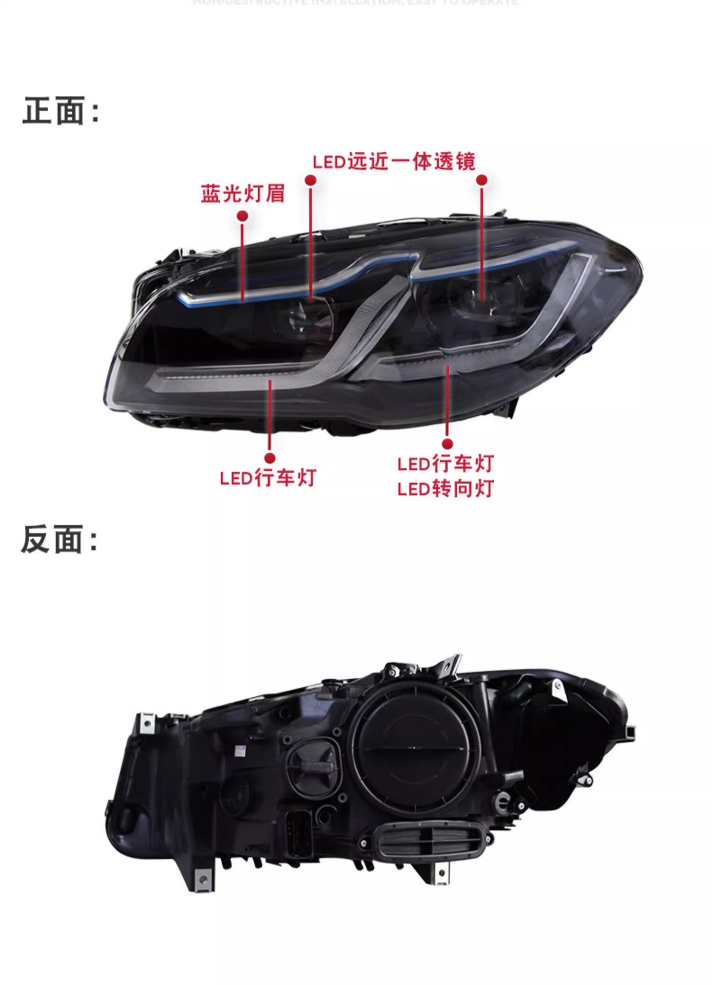 - Modern Aesthetic Upgrade: Update the look of your BMW 5 series with a sleek, modern headlight design, adding a fresh and aggressive styling element to your vehicle’s front end.