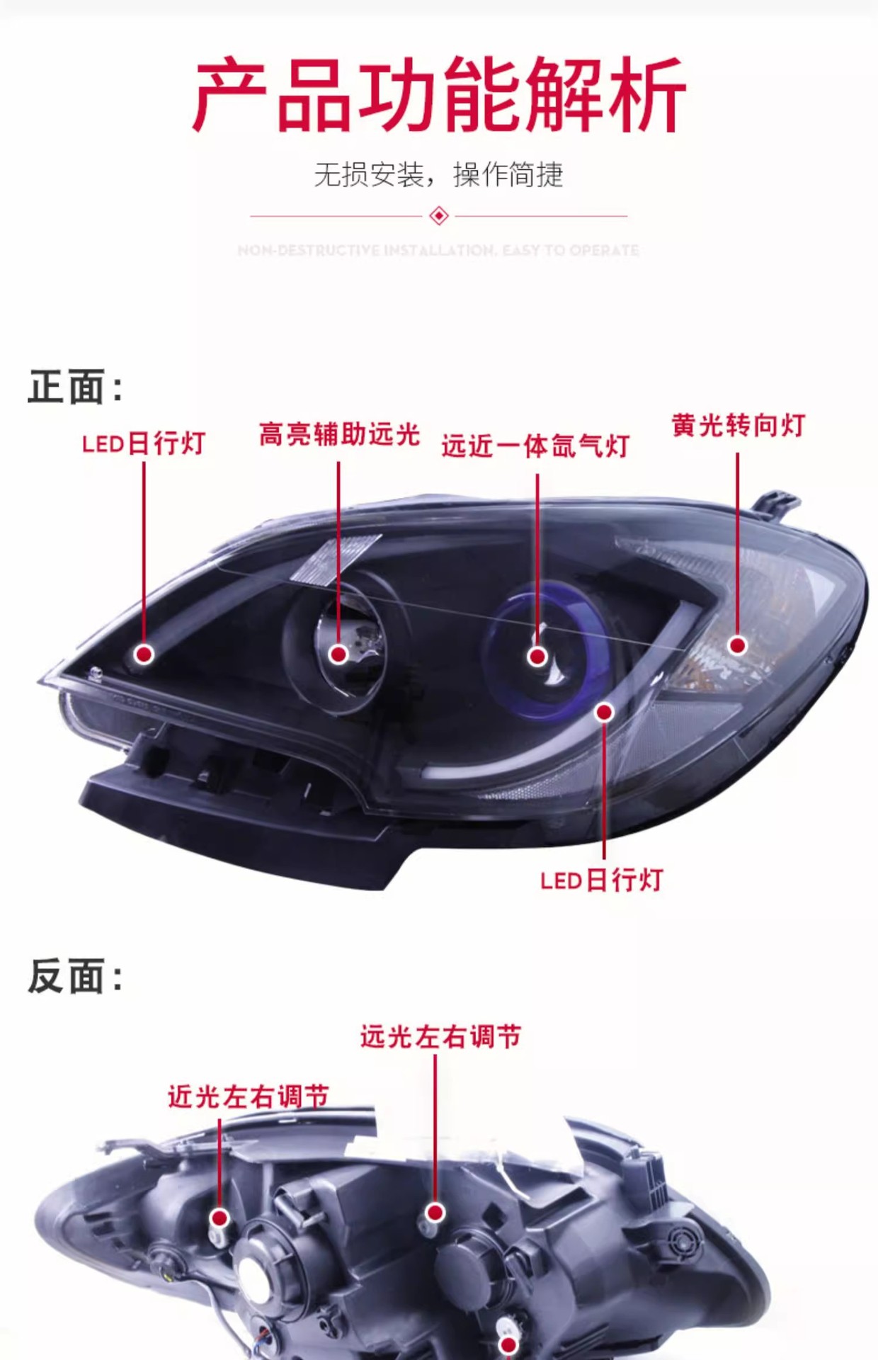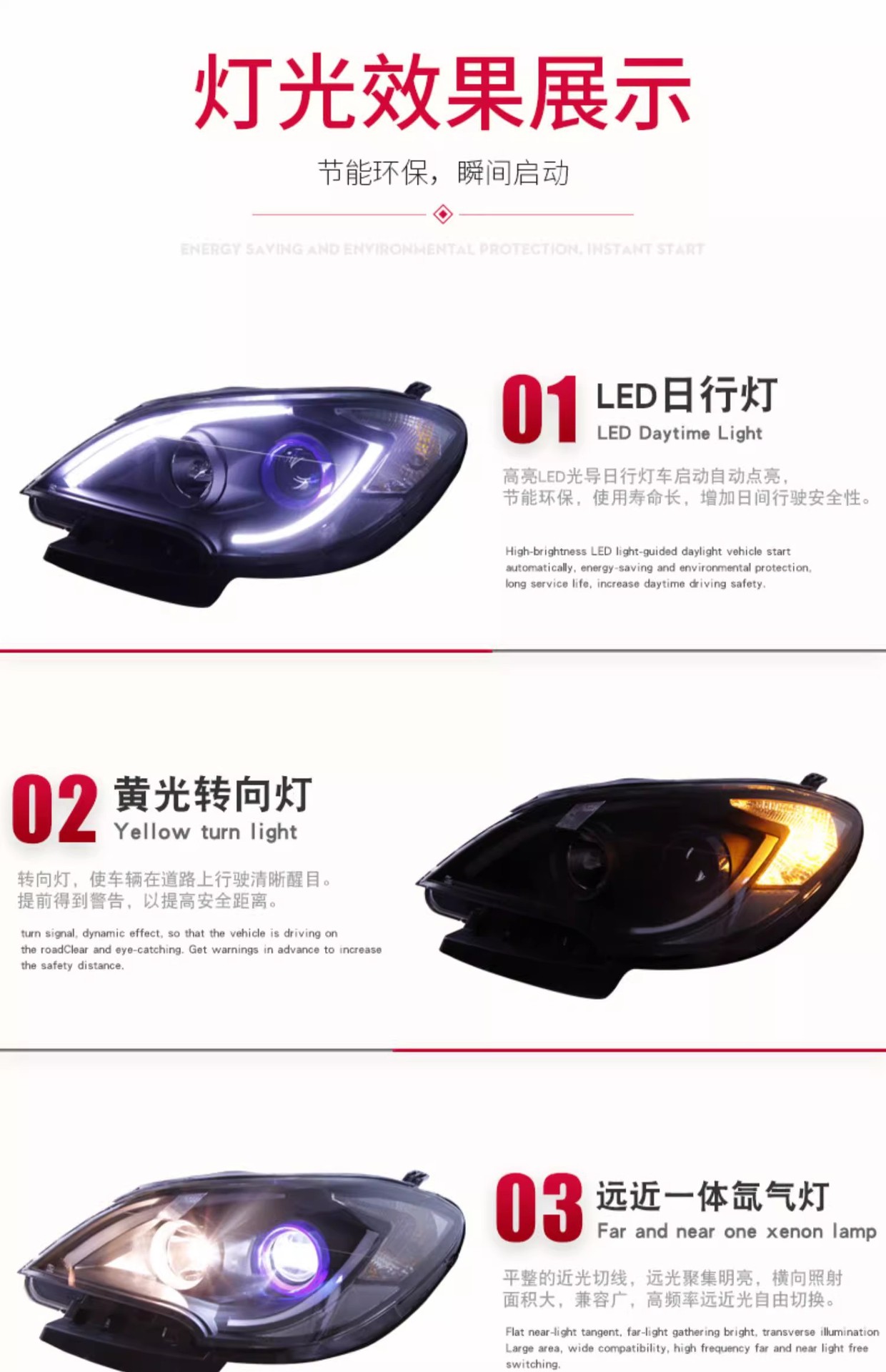 - Enhanced Visibility & Style: Features integrated LED daytime running lights (DRL) and a bi-xenon projector lens, significantly improving nighttime visibility and adding a modern, stylish look to your vehicle.