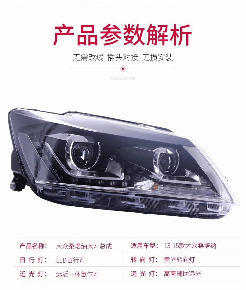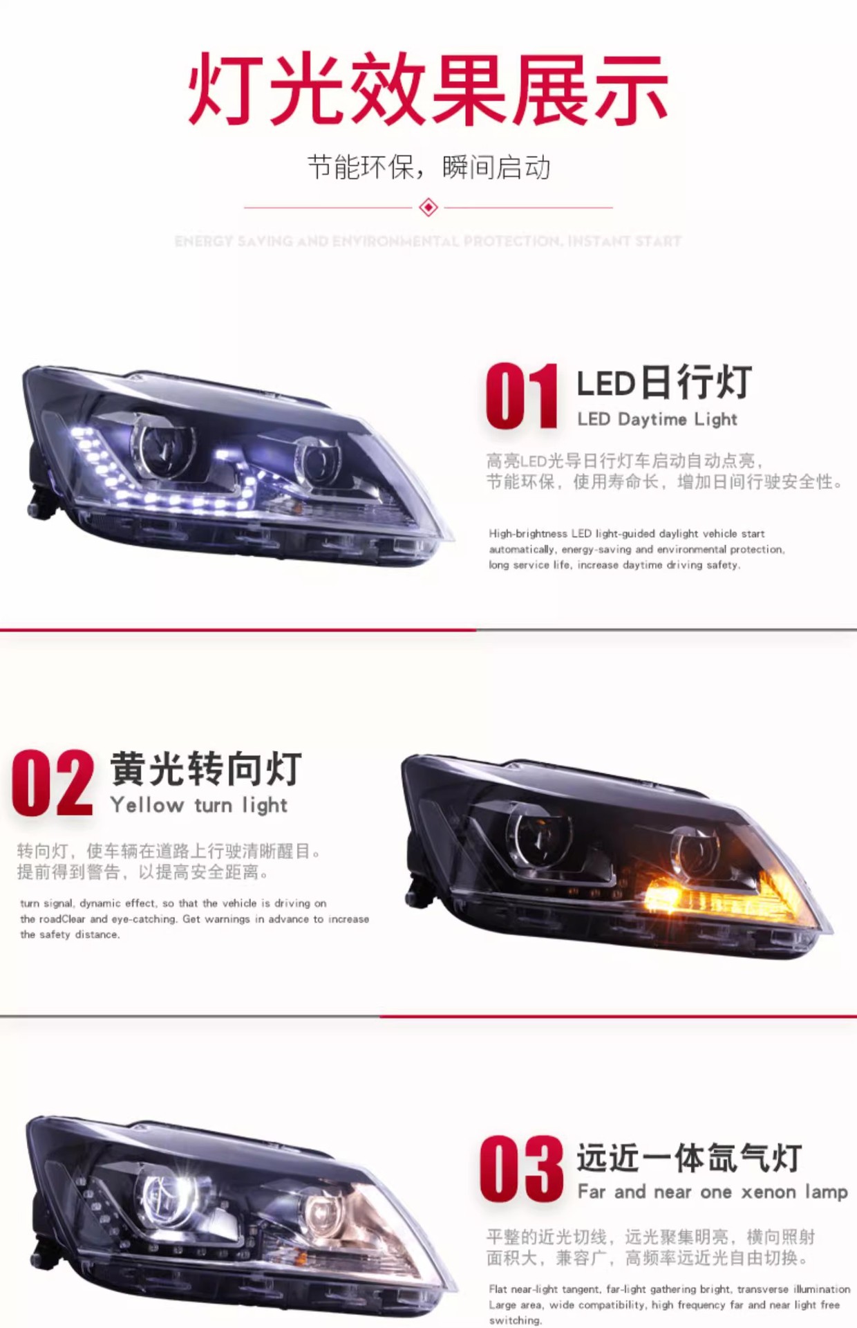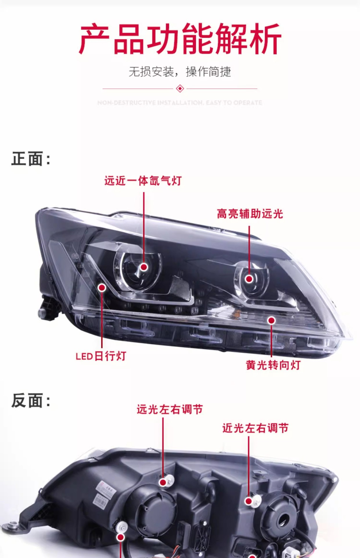 - Precise Fitment: Specifically designed for VW New Santana models from 2013 to 2015, ensuring a perfect, direct-fit replacement for your original headlight assembly. No modifications needed.