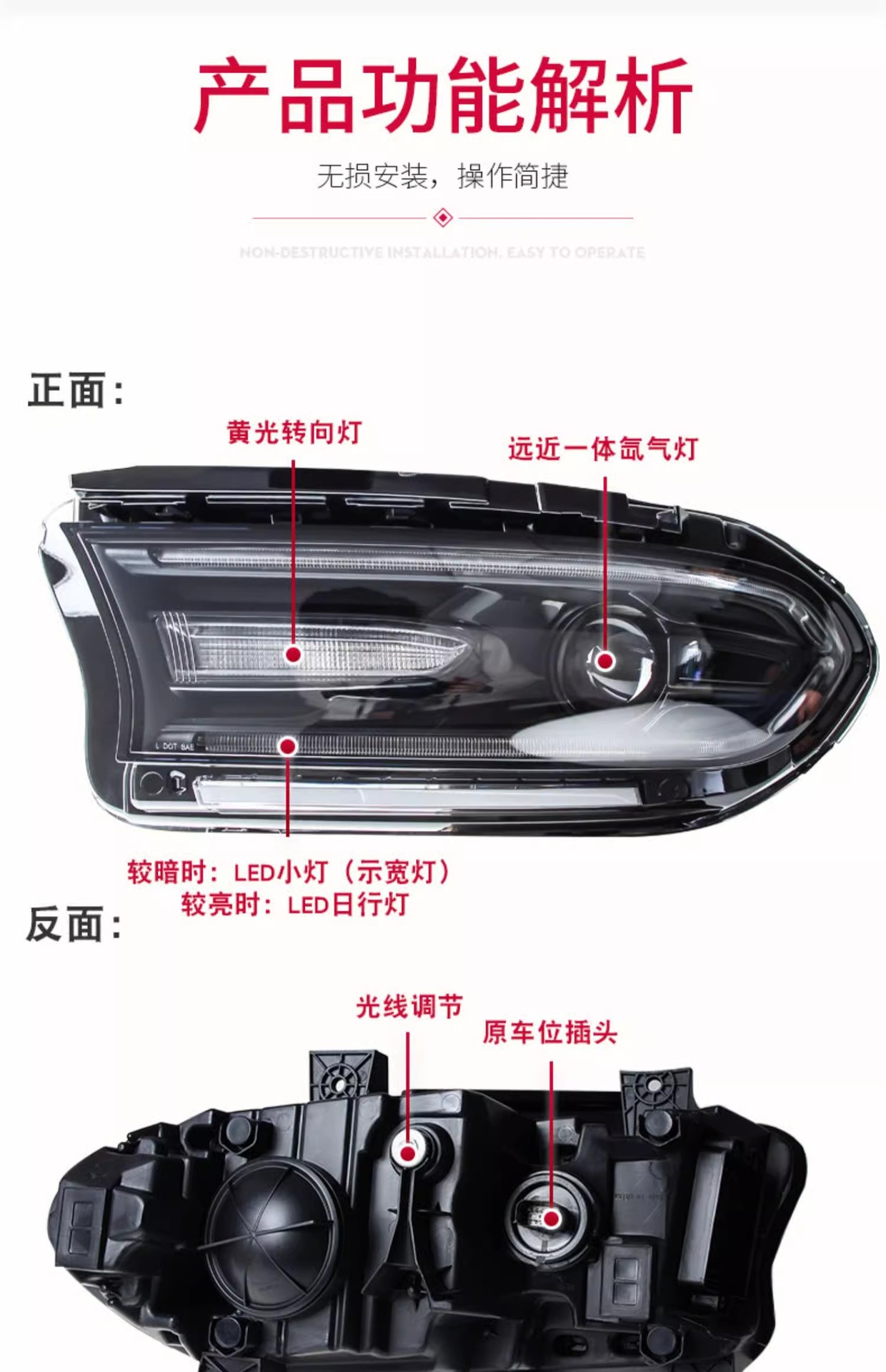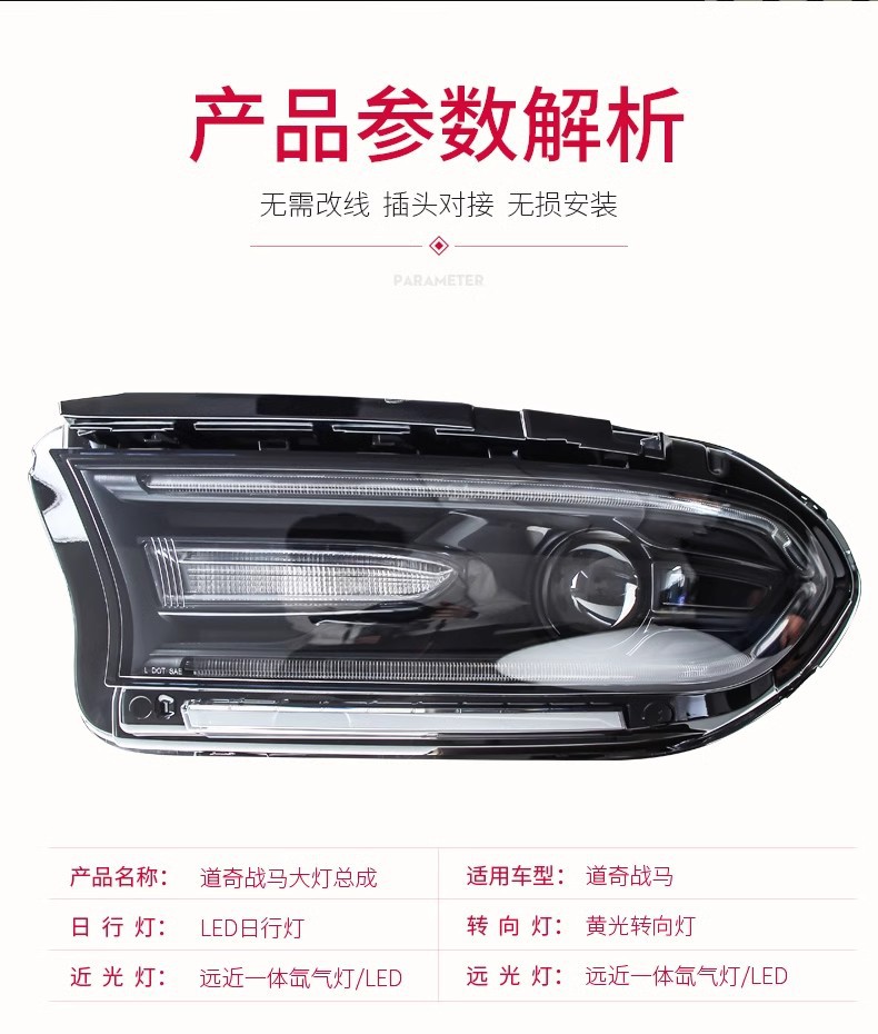 - Precise Fitment: Specifically designed for Dodge Challenger models from 2008 to 2019, ensuring a perfect, direct-fit replacement for your original headlight assembly.