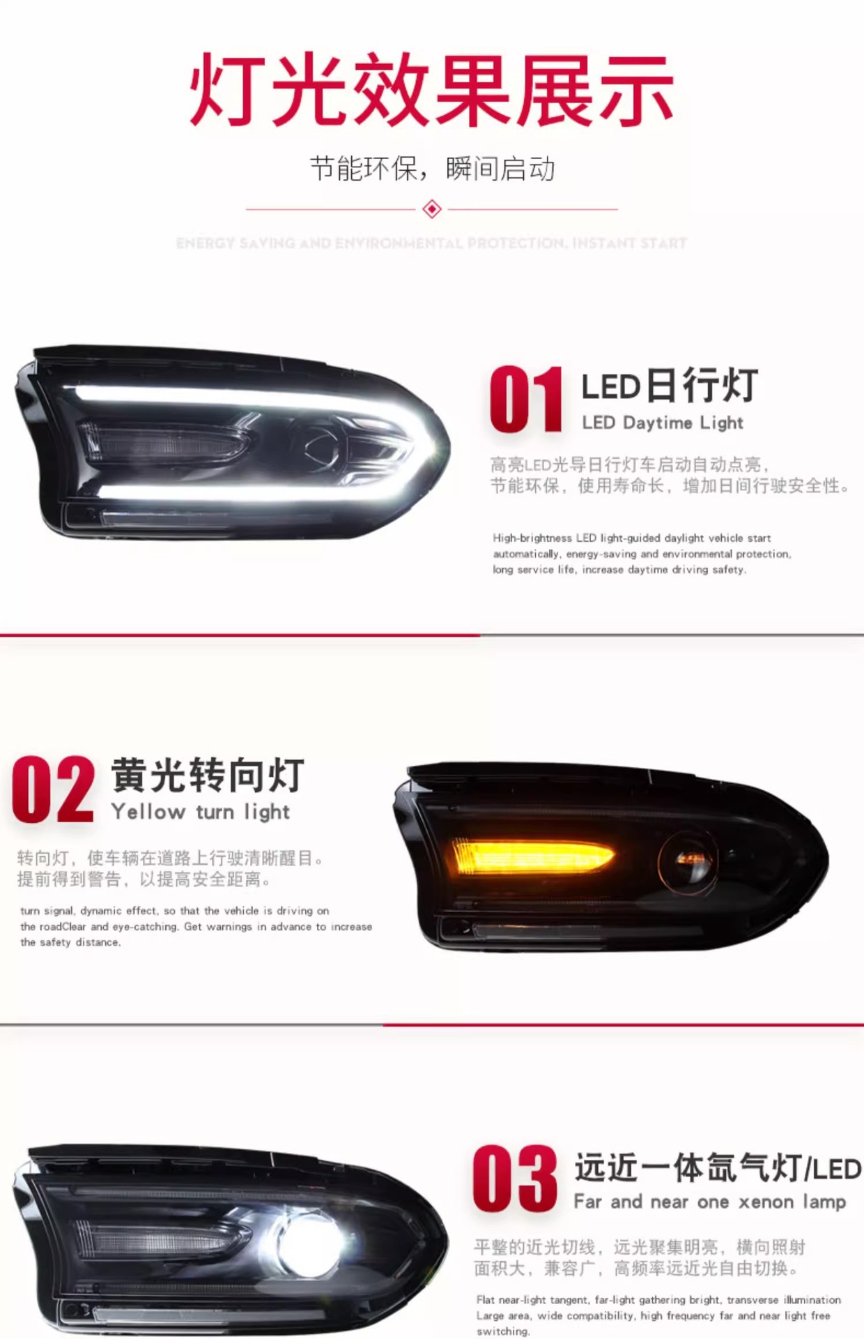 LED DRL Bi-xenon Projector Headlight Assembly for Dodge Challenger (2008-2019)