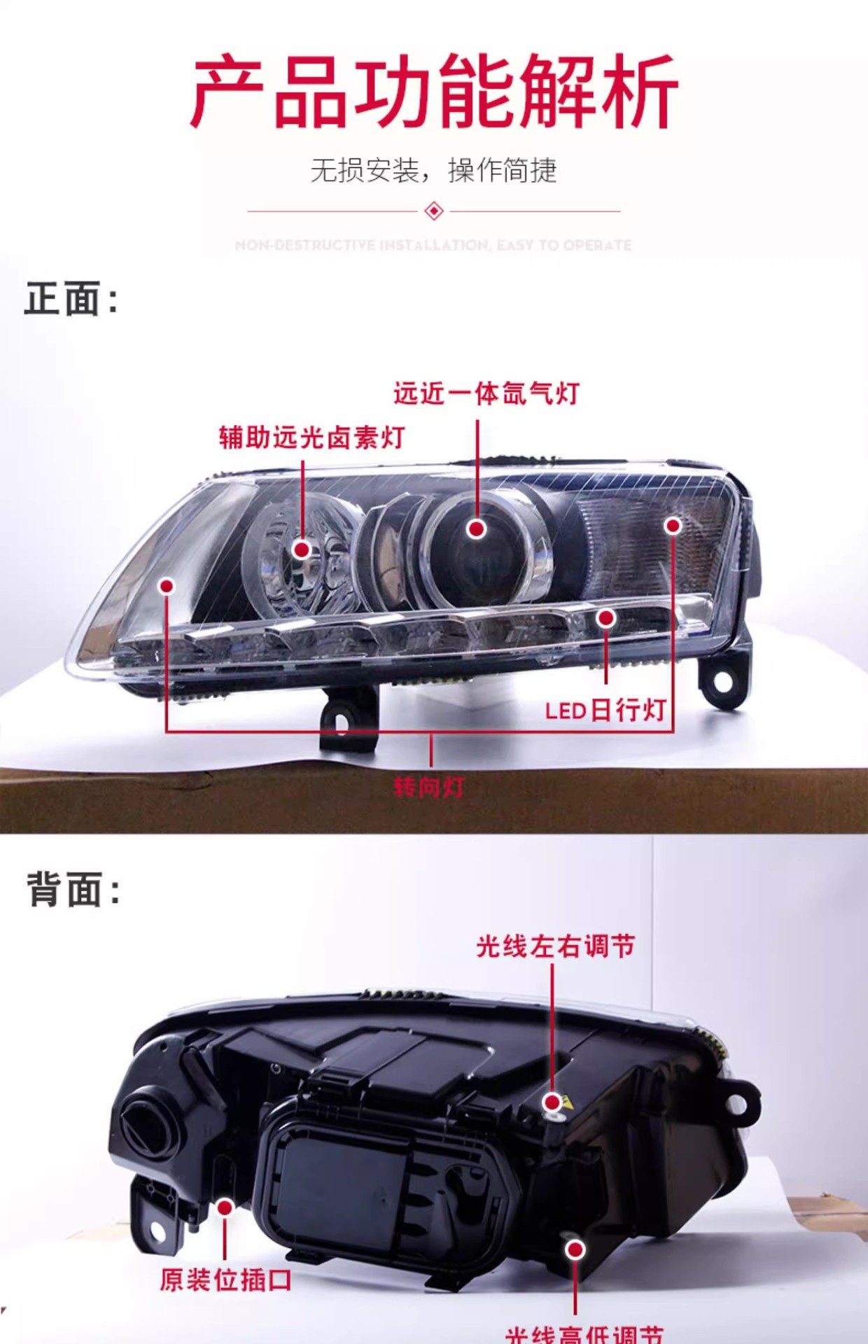 LED DRL Bi-xenon Projector Headlight Assembly for Audi A6L (2005-2011)