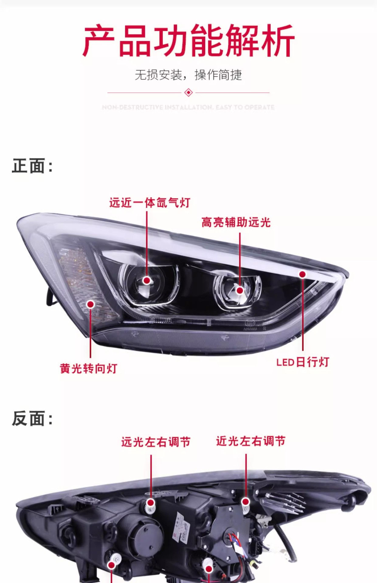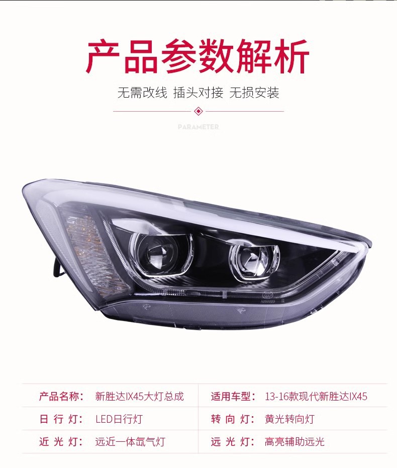 - Precise Fitment: Specifically designed for Hyundai Santa Fe IX45 models, ensuring perfect compatibility and seamless integration with your vehicle’s original headlight system.