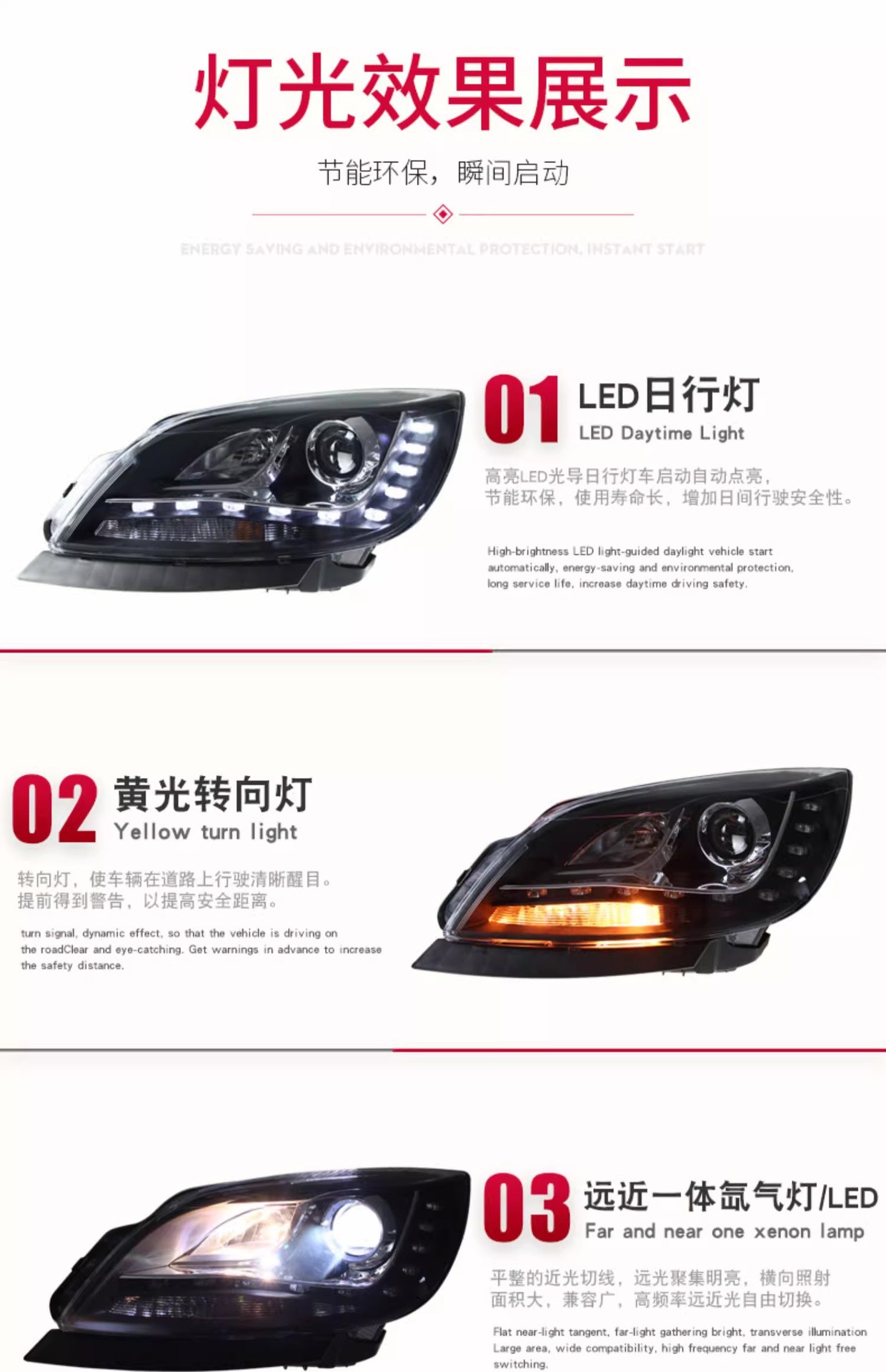 - Precise Fitment: Specifically designed for Buick Excelle GT models from 2009 to 2014, ensuring a perfect, direct-fit replacement for your original headlights.