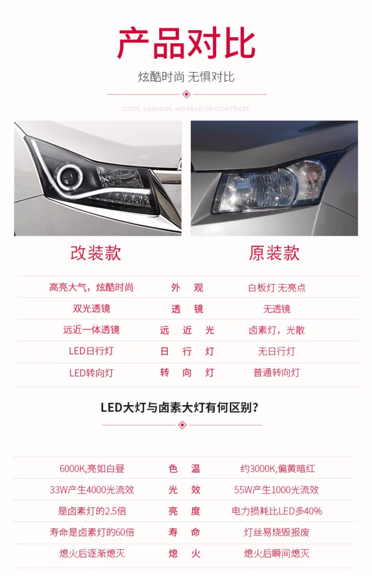 LED DRL Bi-xenon Projector Headlight Assembly for Chevrolet Cruze 2009-2014