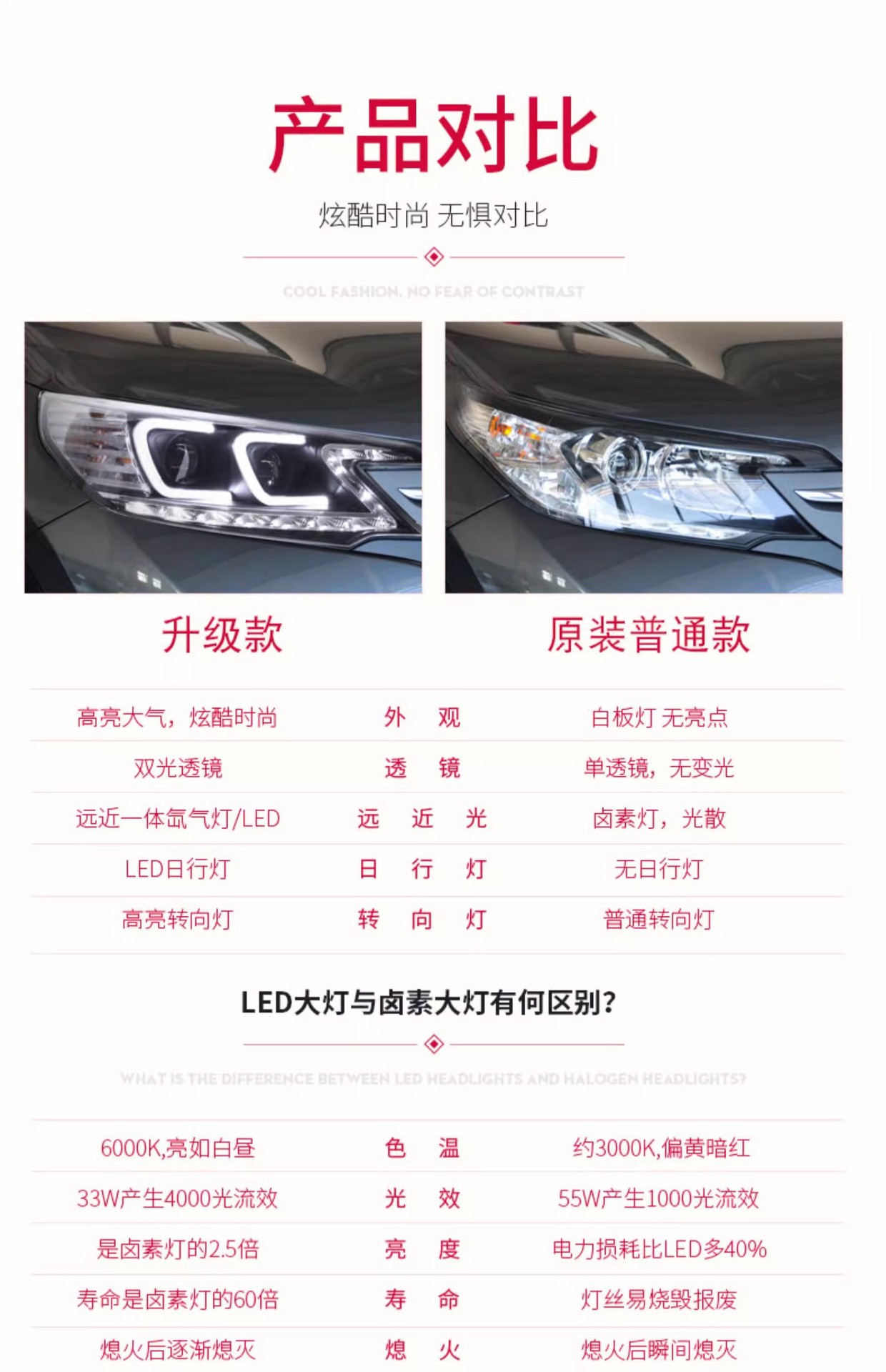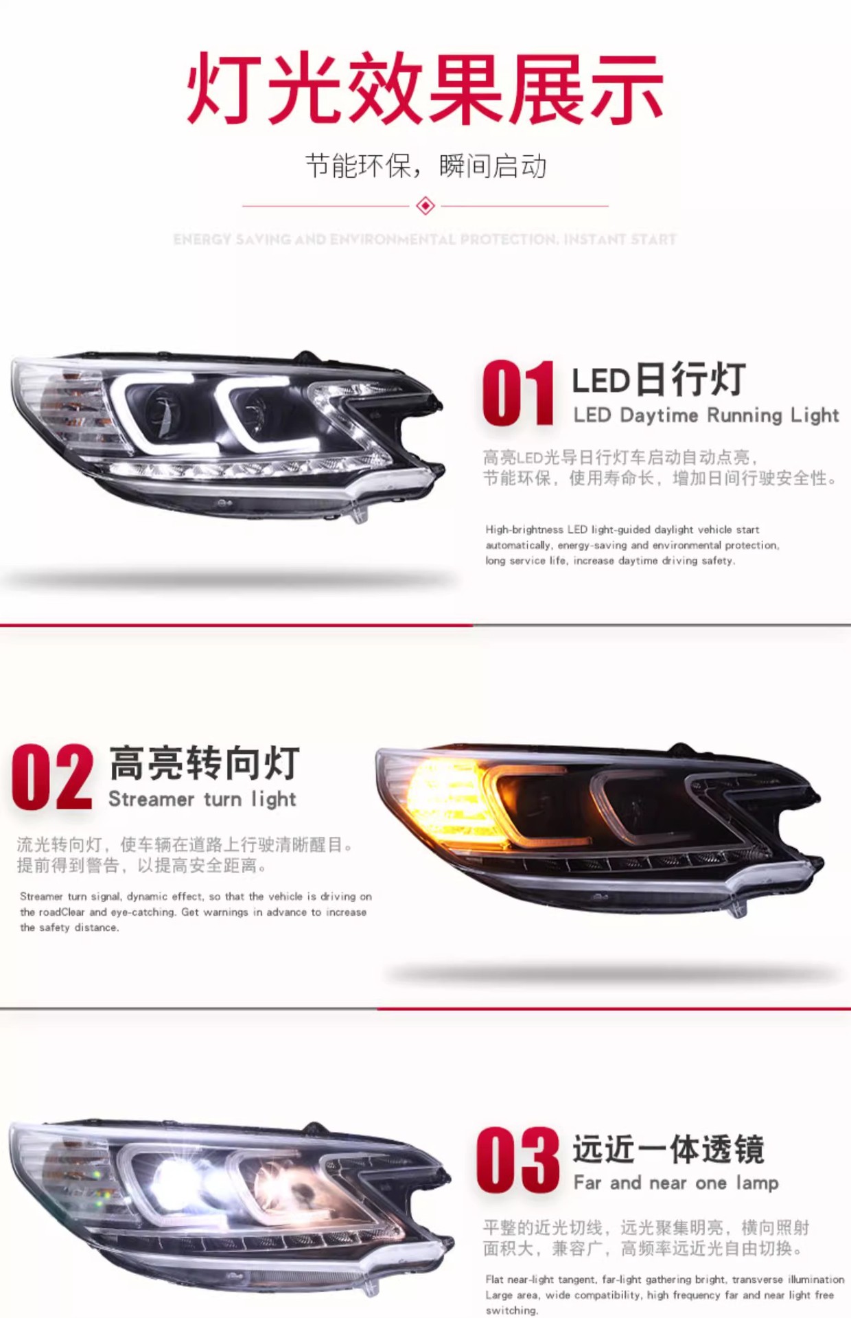 LED DRL Bi-xenon Projector Headlight Assembly for Honda CRV 2012-2014