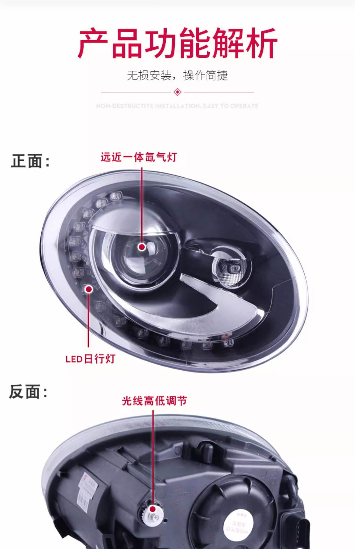 LED DRL Bi-xenon Projector Headlight Assembly for Volkswagen VW Beetle 2013-2018