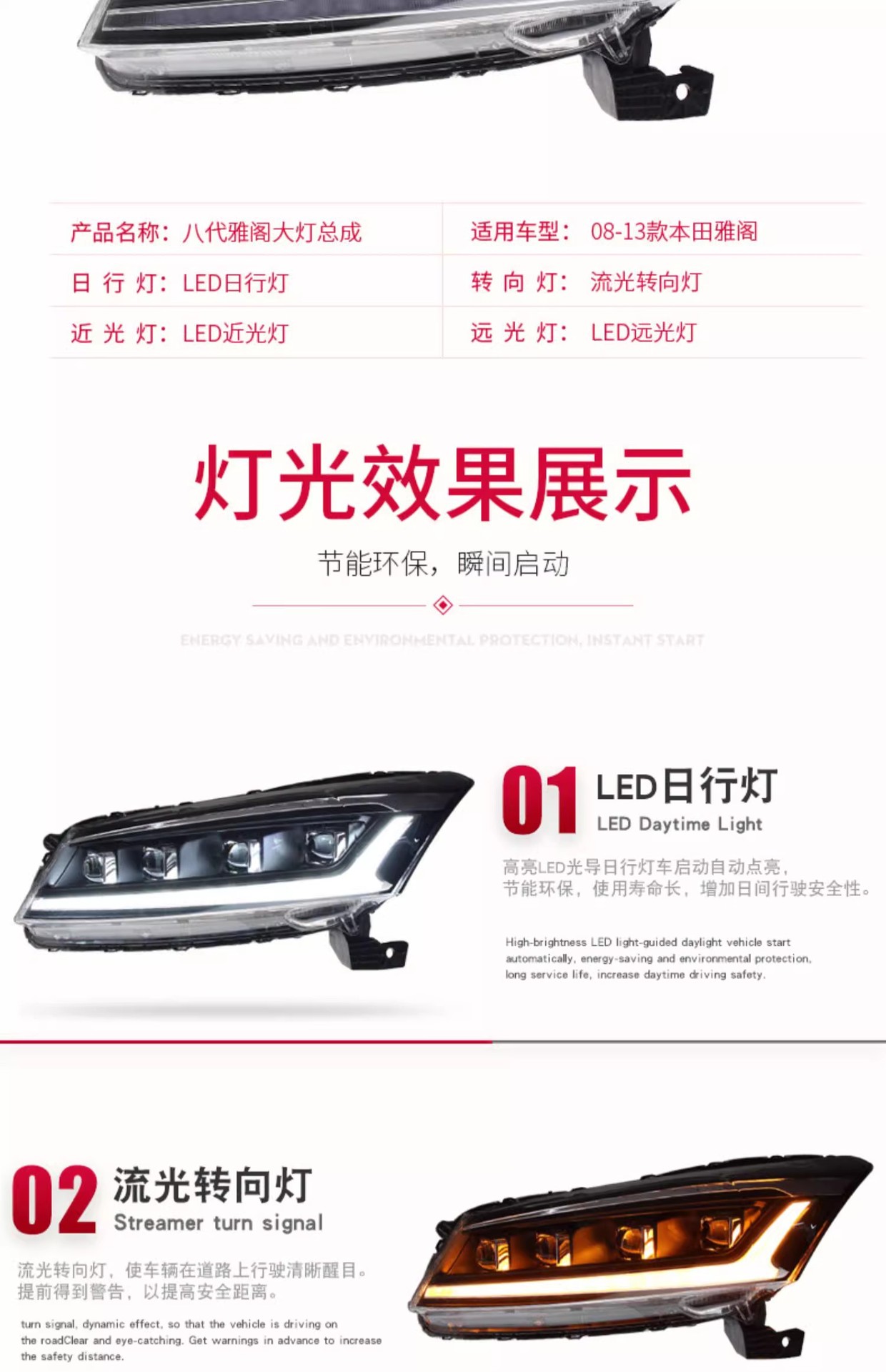 LED DRL Demon Eye Flowing Turn Signal Headlight Assembly for Honda Accord 8th Gen (2008-2013)
